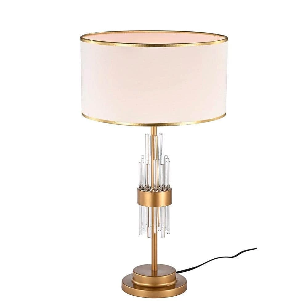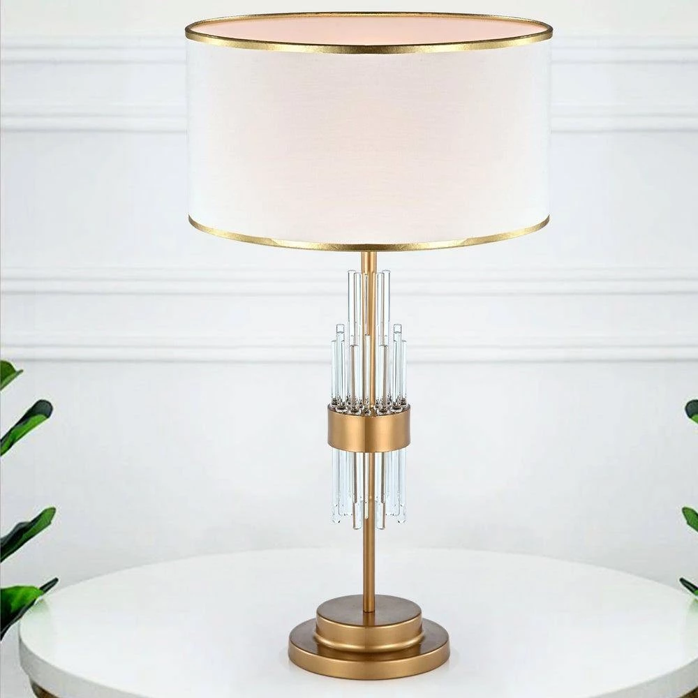 Enrich and take in a breath of fresh air with our 15-inch Matte Gold Katte Table Lamp. Our lighting fixture features one (1) light, a fabric White shade, and a crystal embodied base that is bound to refreshen your environment. Decorative during the day and decoratively functional at night, get the best of both worlds with our 15-inch Katte Table Lamp.