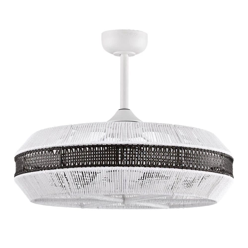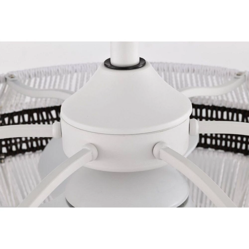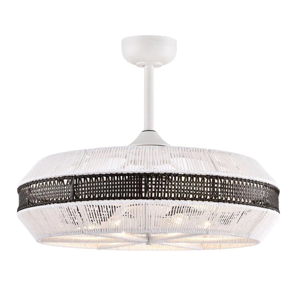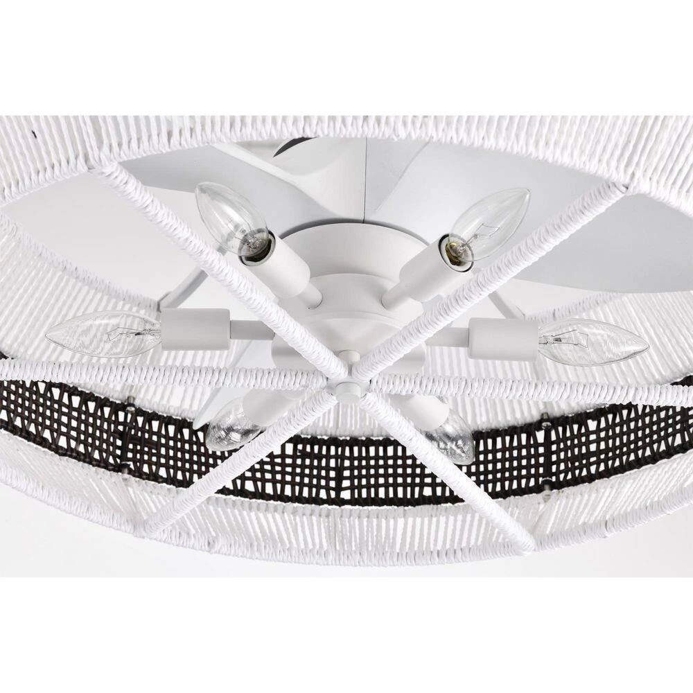 Allow to be greeted with a breath of fresh air with the help of our 27 in. Gloss White and Black Rattan Kauman Ceiling Fan Chandelier. Our fixture features 6-lights, a lovely multi-colored woven rattan shade, and 6 fan speeds that is bound to find your right level of cooling comfort. Decorative during the day and decoratively functional at night, get the best of both worlds with our 27 in. Kauman Ceiling Fan Chandelier.
