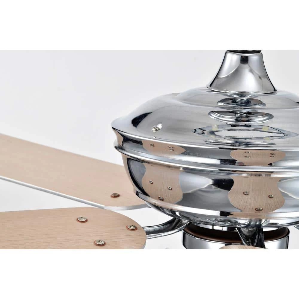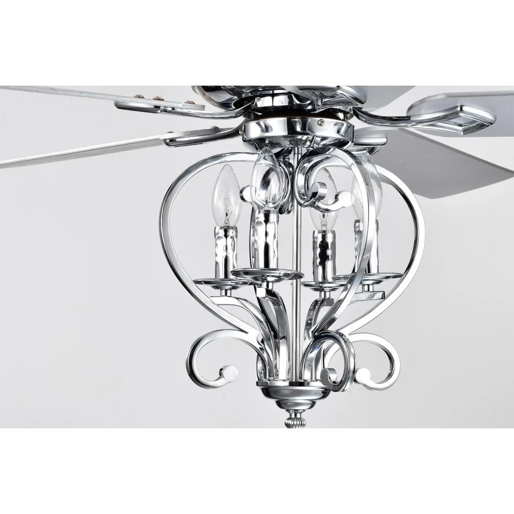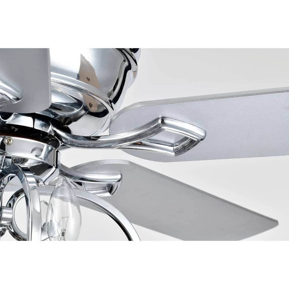 Allow your home to have character with the help of our 52 in. Chrome Kayla Ceiling Fan Chandelier. Our fixture features 4-lights, 3 fan speeds and candelabra style arms that brings this unique Chrome-covered design in all together. Decorative during the day and decoratively functional at night, get the best of both worlds with our 52 in. Kayla Ceiling Fan Chandelier.