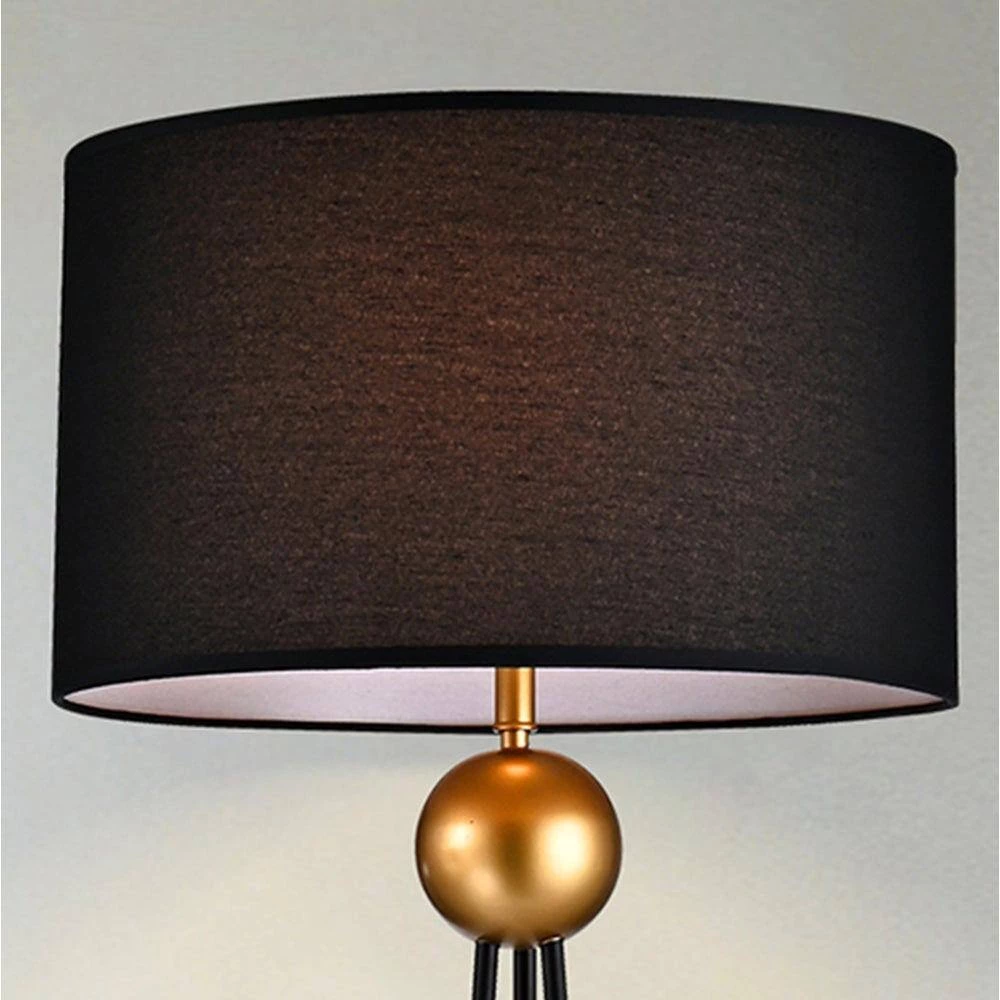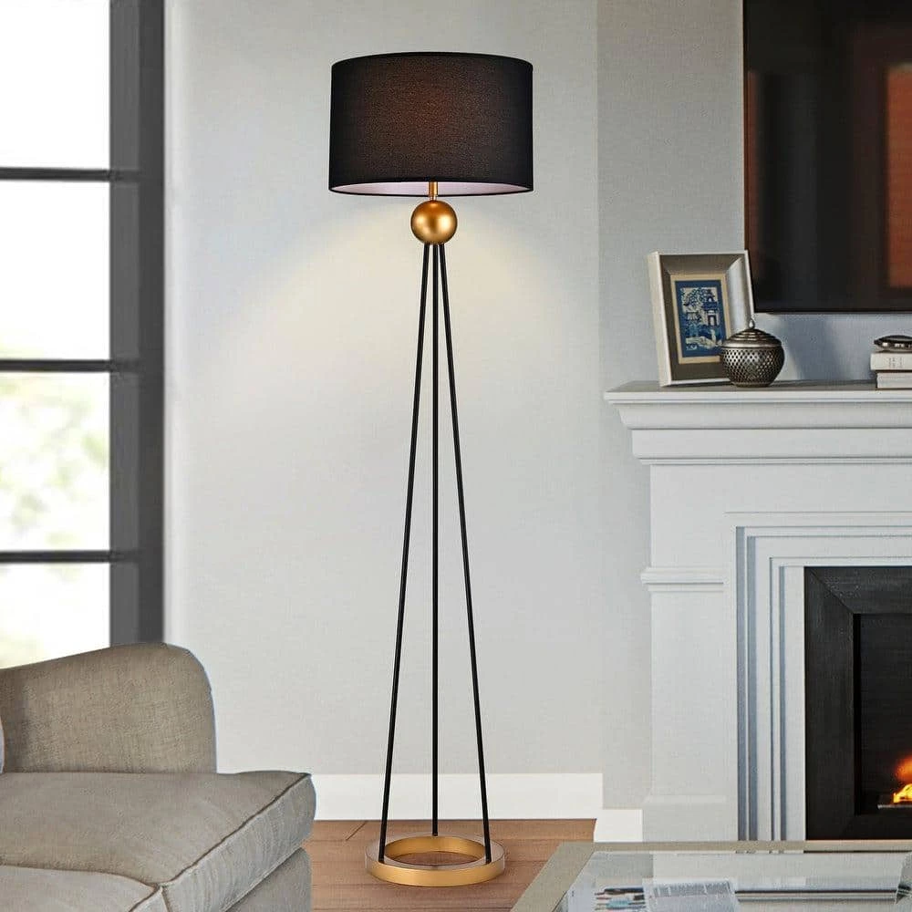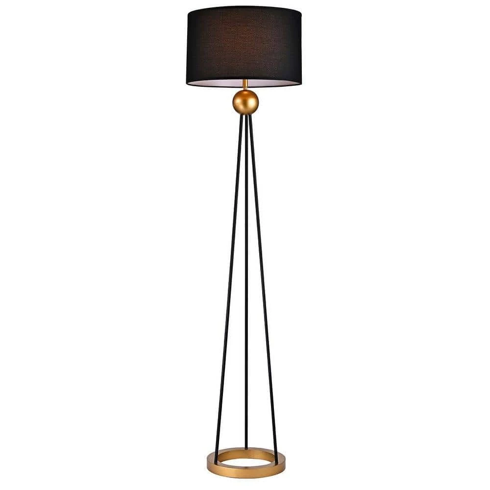 Create a warm glow around any room with this sophisticated floor lamp. Black and gold metals are mixed to create a style that can fit into many settings. The laminated fabric shade gently diffuses the light and reveals a delicate texture when lit up.