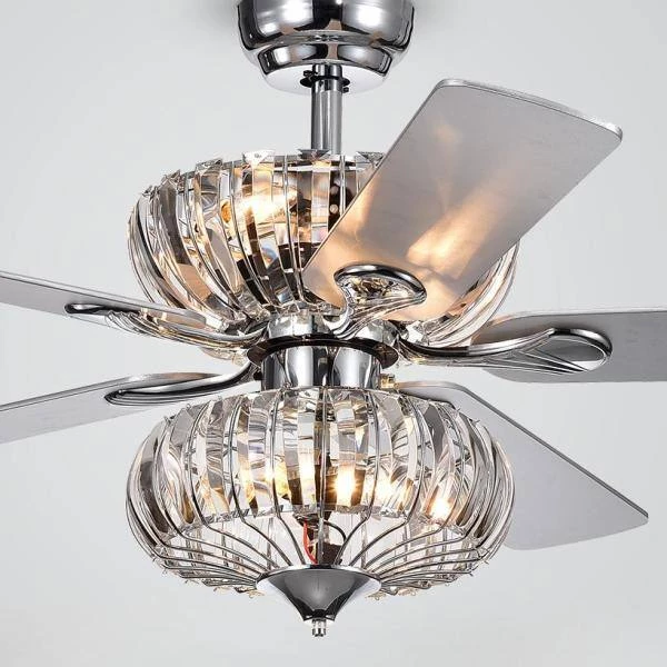 Shimmer and shine with the beautiful, old-world Hollywood glamour of this 52 in. remote controlled ceiling fan. The silver finished wooden blades paired with a metal silver chrome base is complimented by the crystal detailing that surrounds the fixture. This remote controlled ceiling fan is unlike any other.