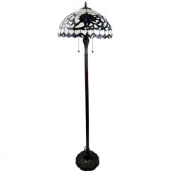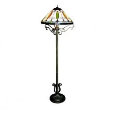 62 in. Brass Dragonfly Stained Glass Floor Lamp with Pull Chain Switch by Warehouse of Tiffany