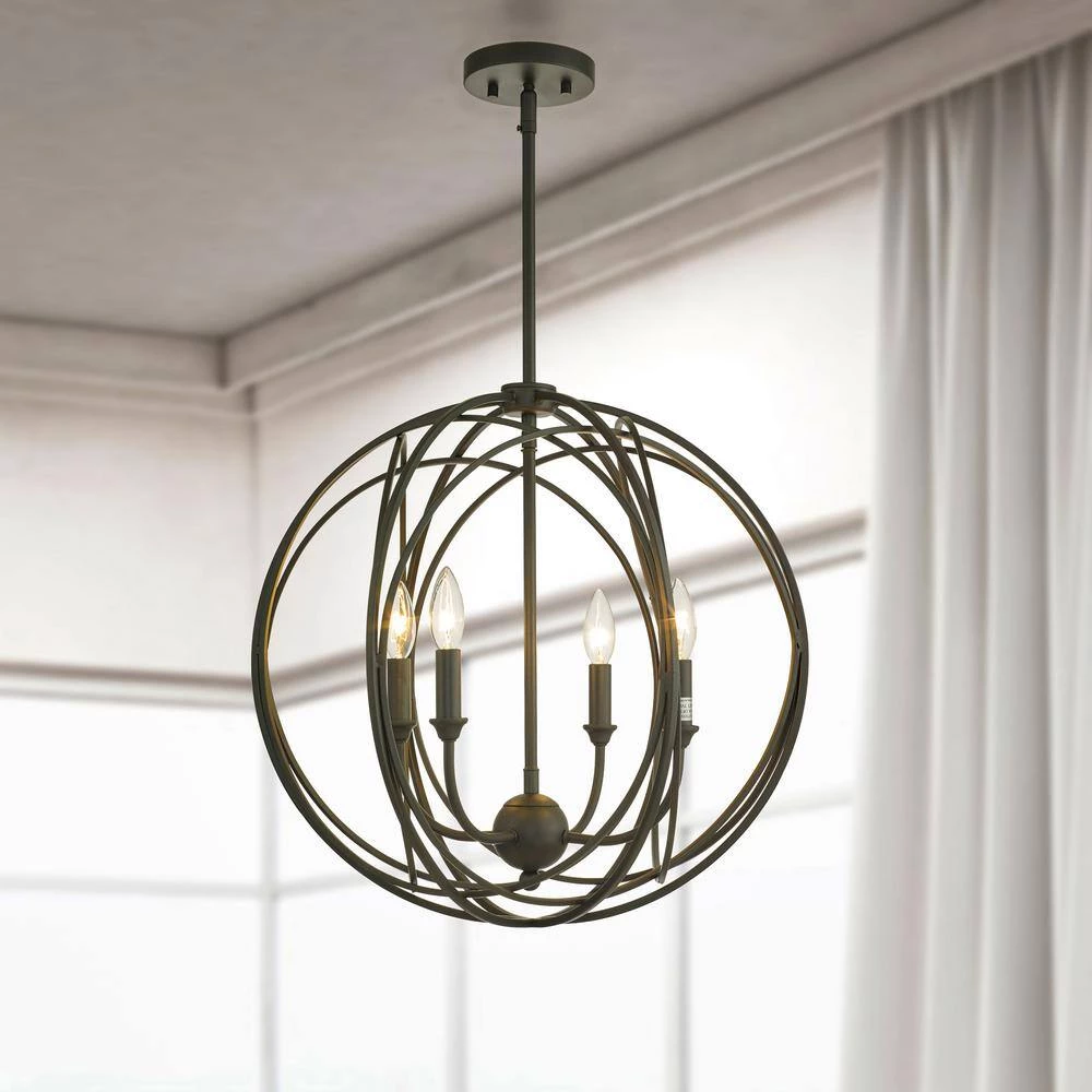 Light up your home with the unique style of this Lancelot pendant lamp. This 4-light pendant lamp is carefully crafted of metal to bring you a high-quality piece that will last in your home for years. As beautiful as it is functional, this pendant lamp has a metal shade complemented by an oil rubbed bronze finish. This modern lighting fixture will fill your home with brightness to enhance your space.