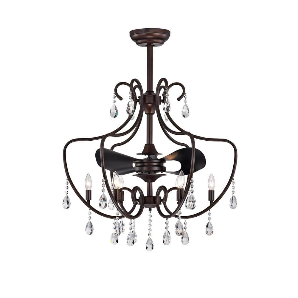 Don’t pass on by what could possibly be the change you were looking for in your daily routine. Finished in an antique bronze, for a vintage look, this ceiling fan features an open metal frame with a 4-tiered crystal base. The remote-controlled functionality allows for easy operation.