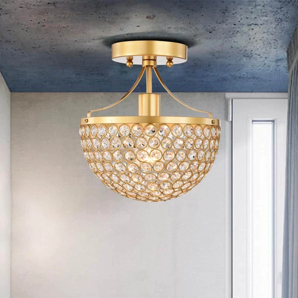 Bejewel up your space with our gorgeous 9 in. Matte Gold Laverna Ceiling Light. Featuring a stunning Matte Gold finish, this fixture is also accompanied by a crystal embedded shade that’s sure to enhance your living space with elegant illumination. So don’t wait, turn your home into a dream come true with our 9 in. Laverna Ceiling Light.