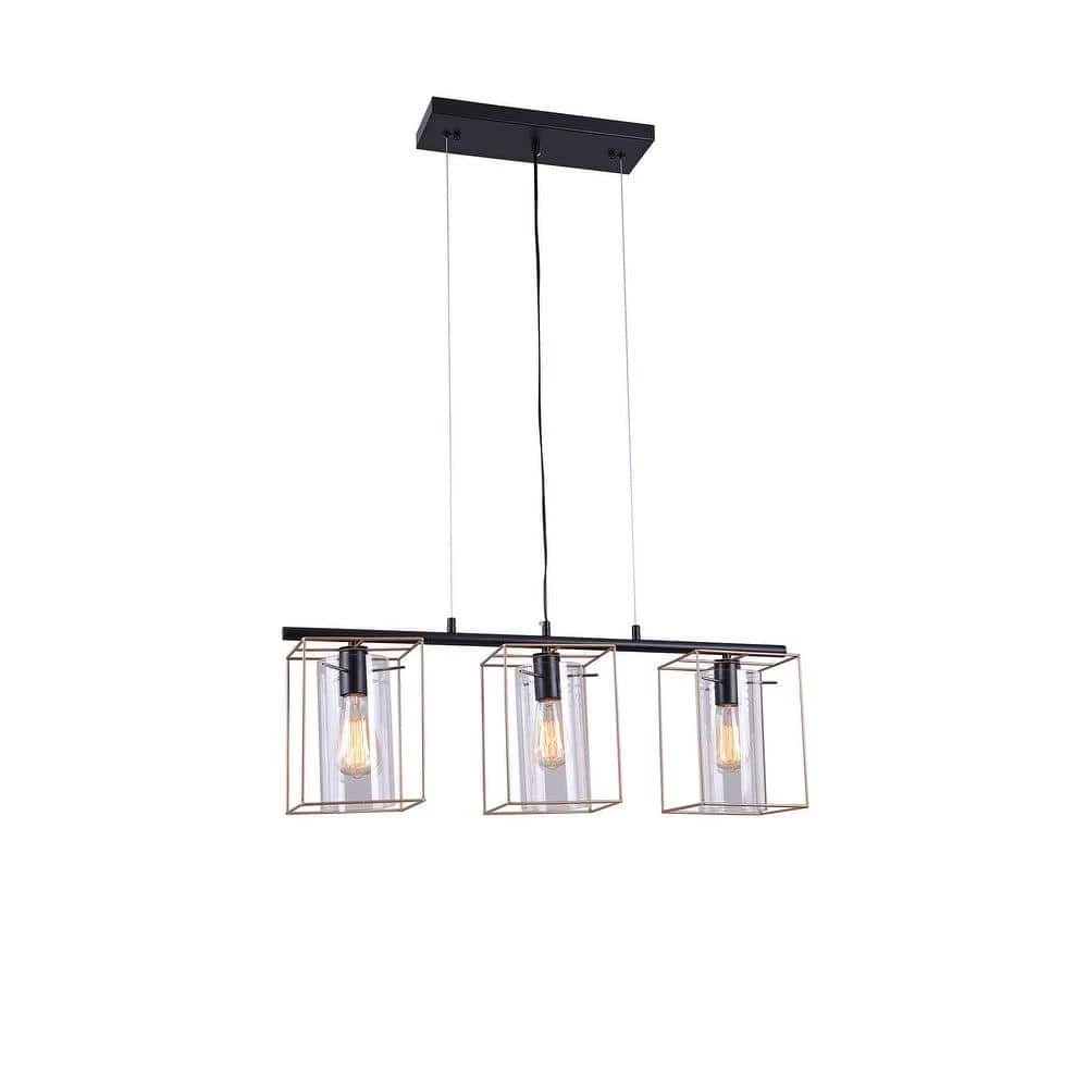 Create a bright and vibrant setting for your dining table or kitchen island with this linear chandelier. Finished in matte black and gold-bronze, this fixture gives off a distinct look, supported by a cable hang-type for that steady balance. The 3-light bulbs enclosed in a clear-cylinder glass shade ensures multi-directional illumination when lit up.