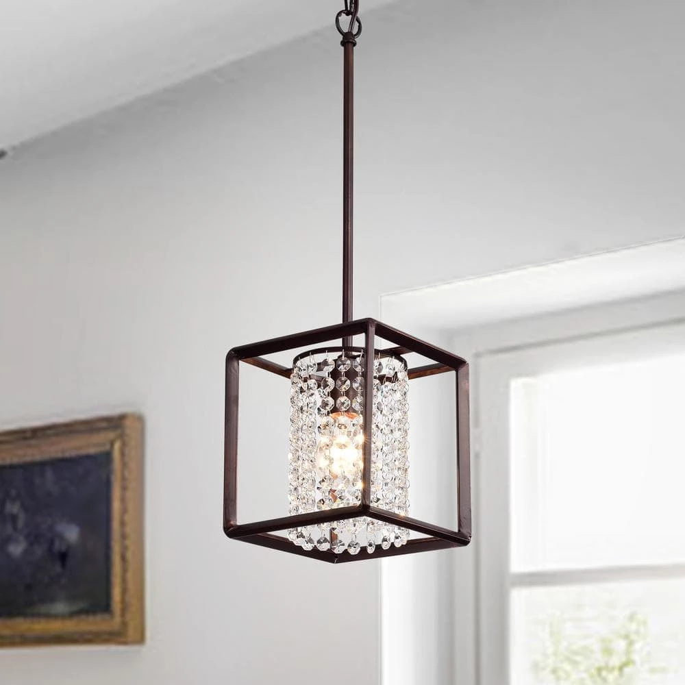 Ramp up your room’s modern aesthetic with this geometric chandelier by Warehouse of Tiffany. Dangling crystal embellishments lend undeniable zing and create a gleaming display when illuminated. This looks minimalist but if you look closer it’s very modern look.