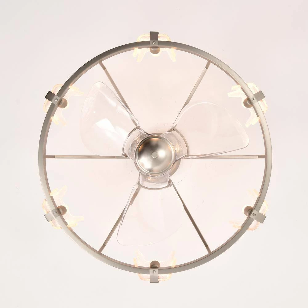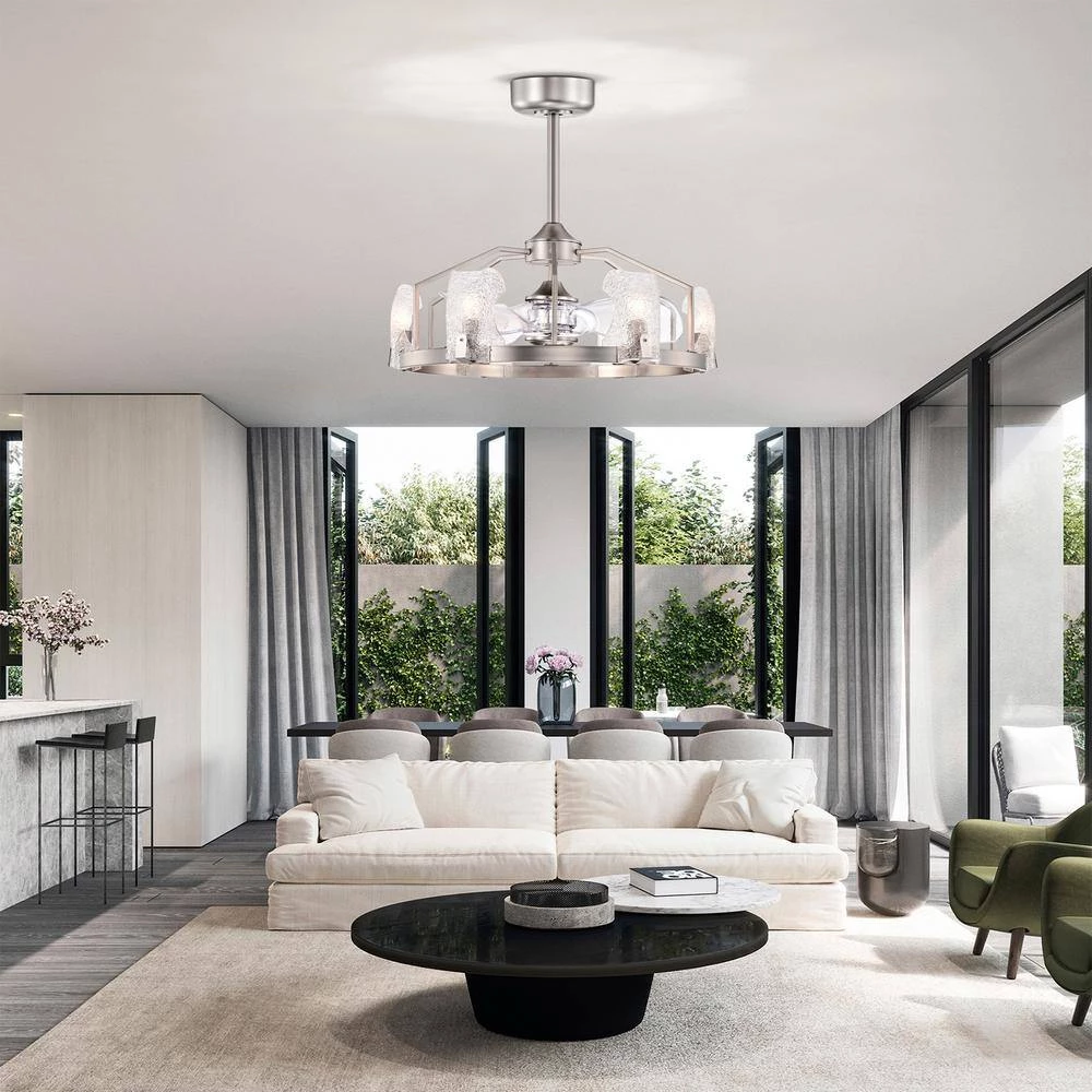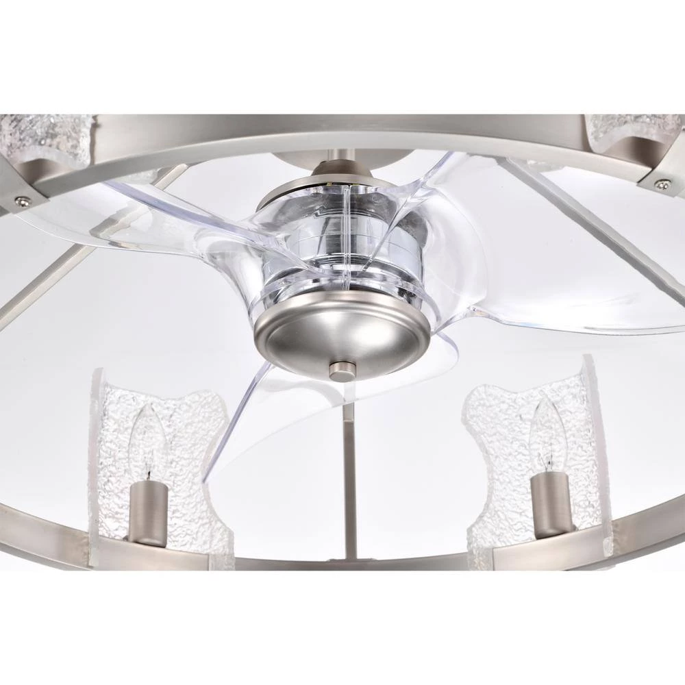 Allow light to elegantly radiate through your home with our 28-inch Satin Silver Luciala Ceiling Fan Chandelier. Our fixture features six (6) lights and are accompanied by decorative bubble glass that enhances the way light is distributed and displayed. With six (6) airing options to choose from, you’re bound to find the right level of cooling comfort. Access these features through the included remote control at your convenience. Decorative during the day and decoratively functional at night, get the best of both worlds with our 28-inch Luciala Ceiling Fan Chandelier.