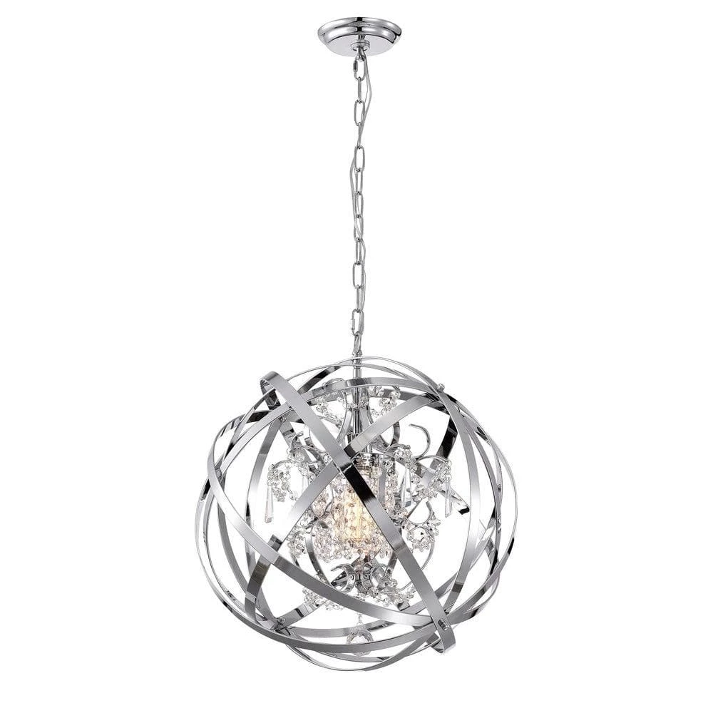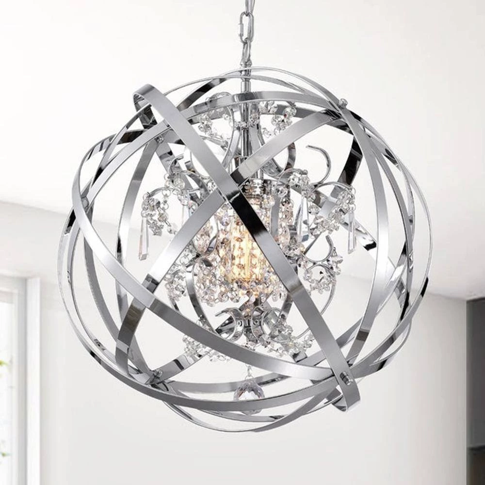 This chrome finished chandelier with 1-light bulb and surrounded by circular motion design on it gives you elegancy and classy added features to your home. Also the said item has an embedded crystal that attractively refract light while there is a bit of bling and sparkle to your humble home.