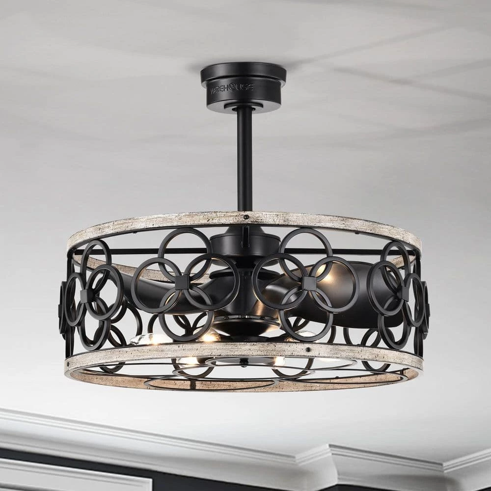 Allow your home to have a creative form of elegance with the help of our 25 in. Matte Black and Faux Wood Grain Luo Ceiling Fan Chandelier. Our fixture features six (6) lights, six (6) fan speeds that are bound to find your right level of cooling comfort and a unique shade that will add character to your home interior. Decorative during the day and decoratively functional at night, get the best of both worlds with our 25-inch Luo Ceiling Fan Chandelier.