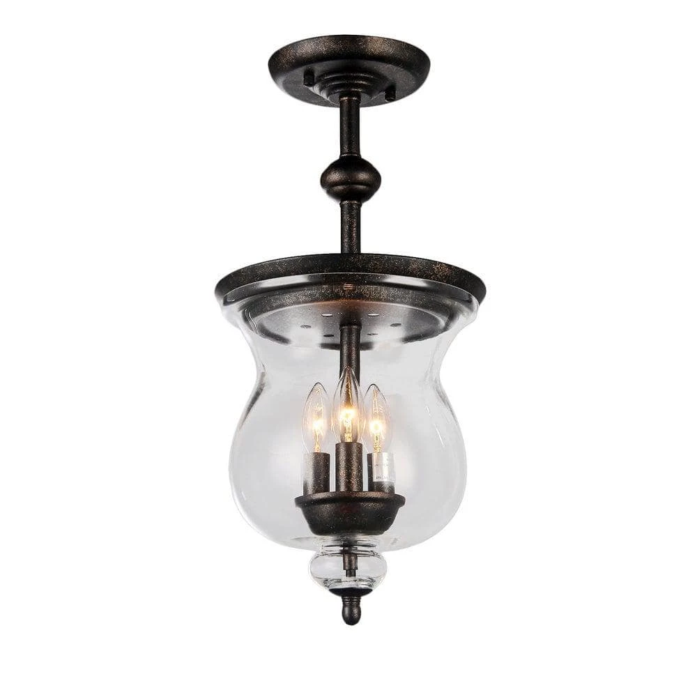 Light up your home with the unique style of this Madigan pendant lamp. This three-light pendant lamp is carefully crafted of metal and glass to bring you a high-quality piece that will last in your home for years. As beautiful as it is functional this pendant lamp has a clear glass shade complemented by a antique finish. This modern lighting fixture will fill your home with brightness to enhance your space. Enjoy the ample lighting of this pendant lamp in your living room or dining room. It features a clear glass as the shade which perfectly reflects the lights. With its size it can brighten up small to large spaces. Its width is about 10 in. and its total height is 22 in. This pendant lamp is reliably sturdy and stylish that can make you fall in with every day. Glass shade pendant lamp Antique finish pendant lamp Modern pendant lamp.