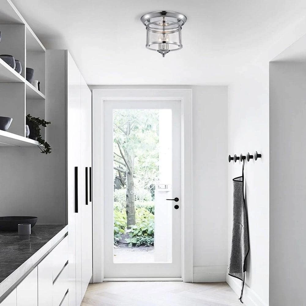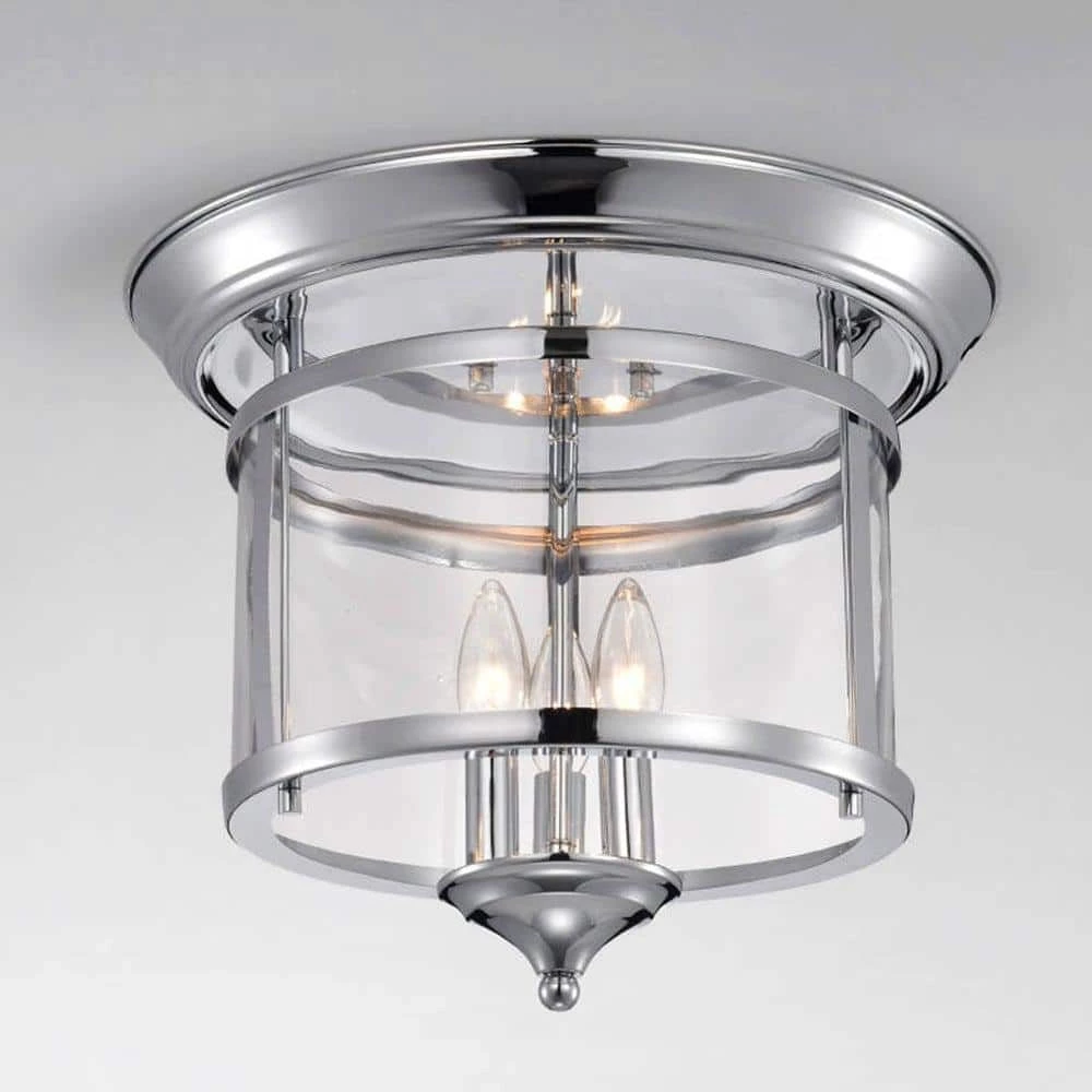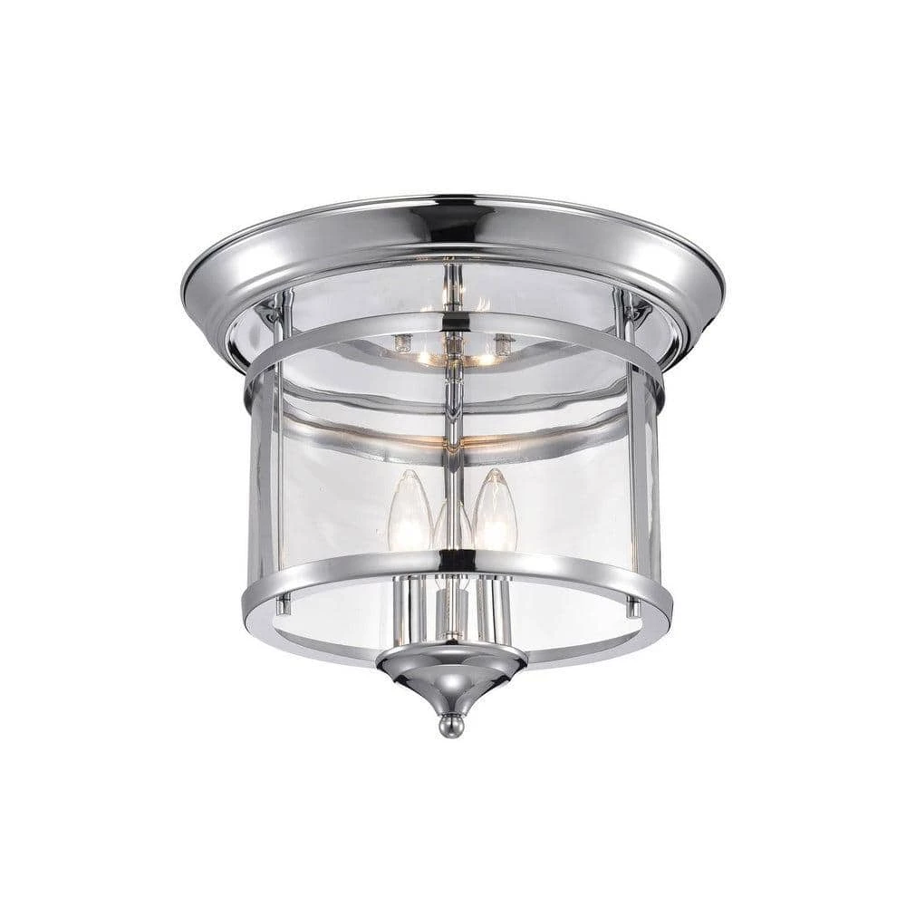 This drum shaped metal flush mount is a show stopper. The chrome finished metal frame is made from steel for that sturdy feel while the 3-lights are enclosed in a glass shade that provides ample illumination when lit up. This is the kind of flush mount that can change an entire room by adding its sophisticated charm and dazzling glow.