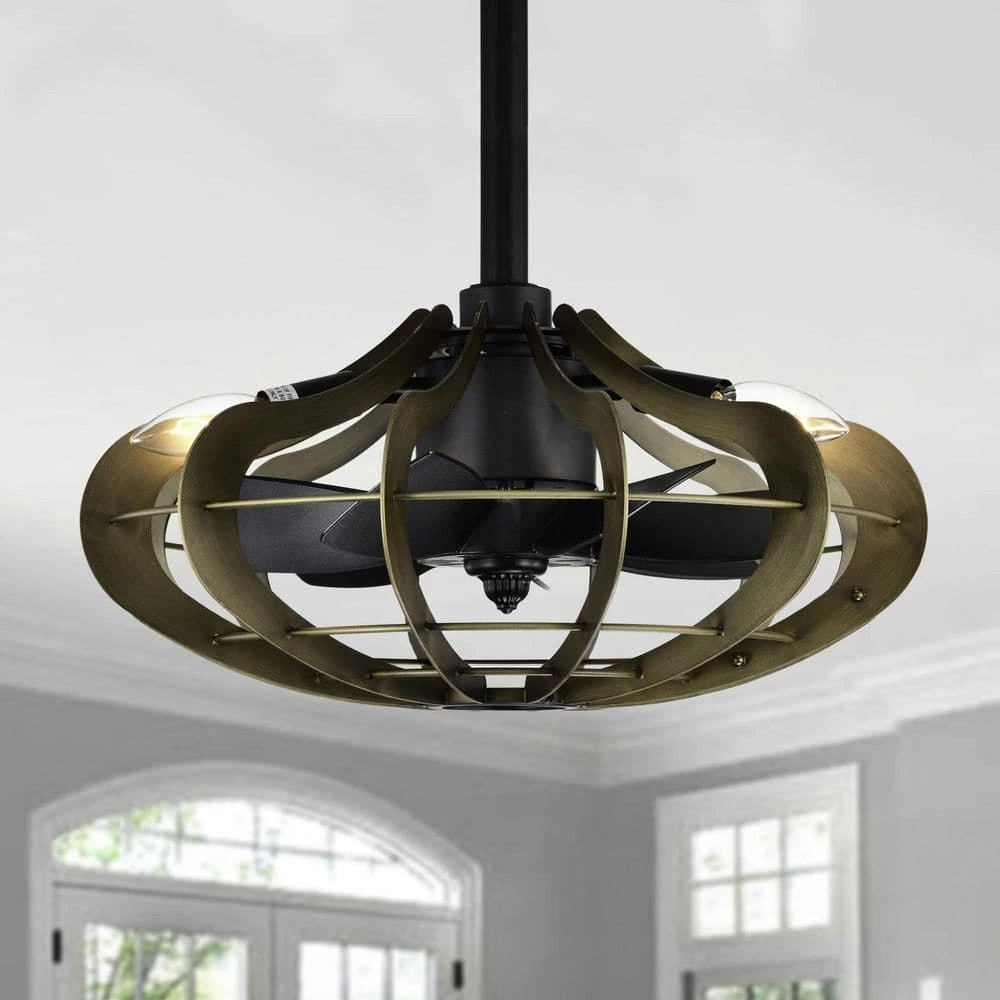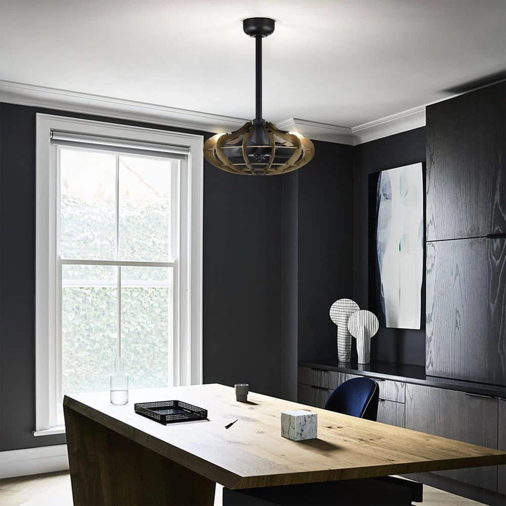 Add some flare to a specific room in your home or business establishment with the help of our 18 in. Matte Black and Faux Wood Grain Mia Ceiling Fan Chandelier. Our fixture features three (3) lights, a unique Faux Wood Grain shade and six (6) fan speeds that are bound to find your right level of cooling comfort. Decorative during the day and decoratively functional at night, get the best of both worlds with our 18-inch Mia Ceiling Fan Chandelier.