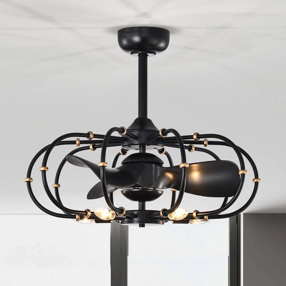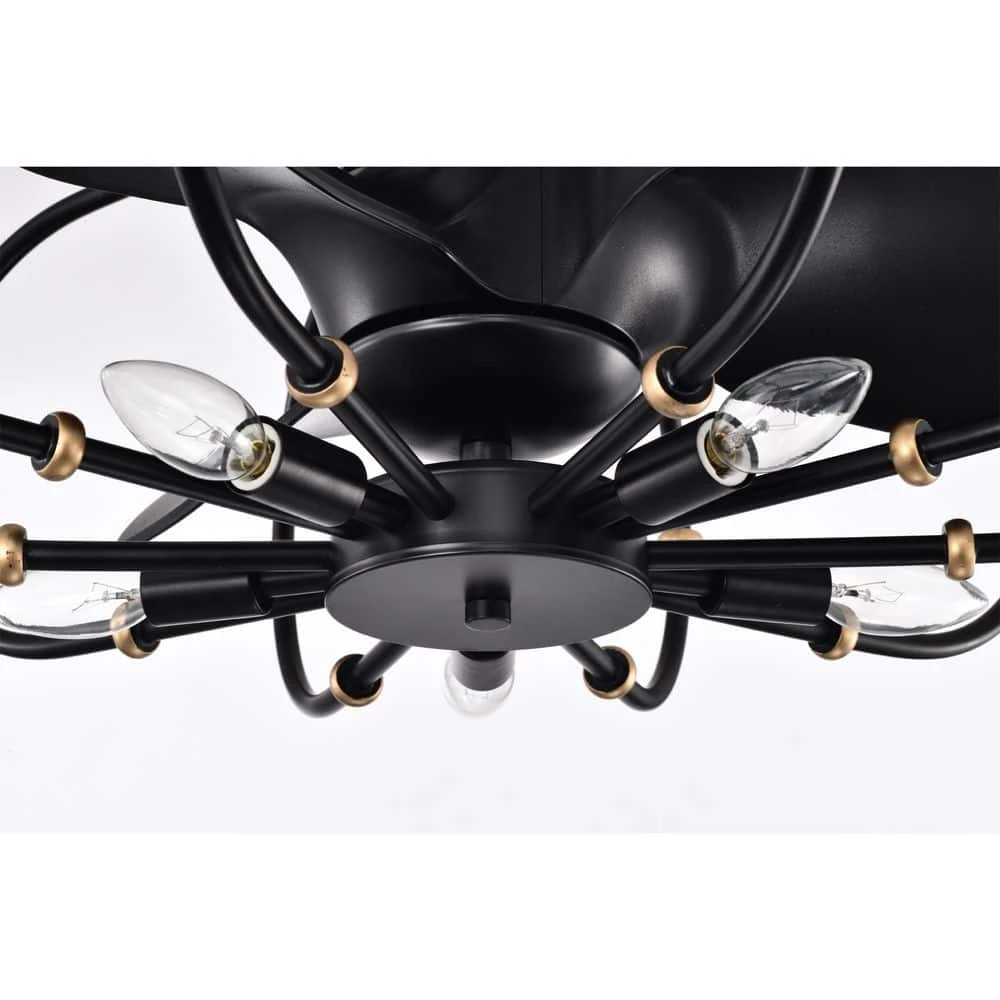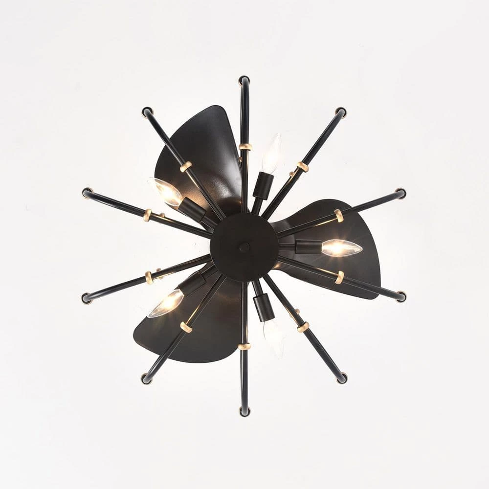 Introduce an elegant piece of functional art to your home with our 26 in. Matte Black Mill Ceiling Fan Chandelier. Our fixture features 5-lights, 6-fan speeds, and decorated with hints of Brass our Mill Ceiling Fan can become the change you didn’t know you needed. Decorative during the day and decoratively functional at night, get the best of both worlds with our 26 in. Mill Ceiling Fan Chandelier.