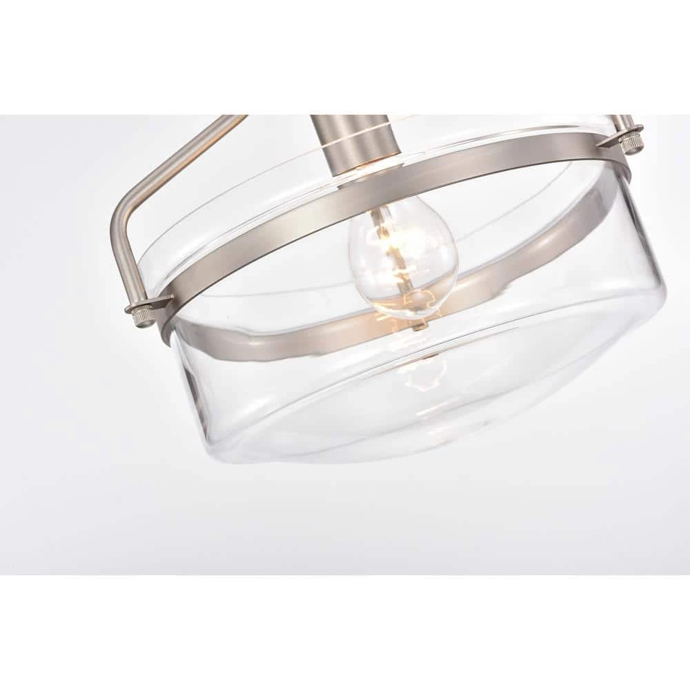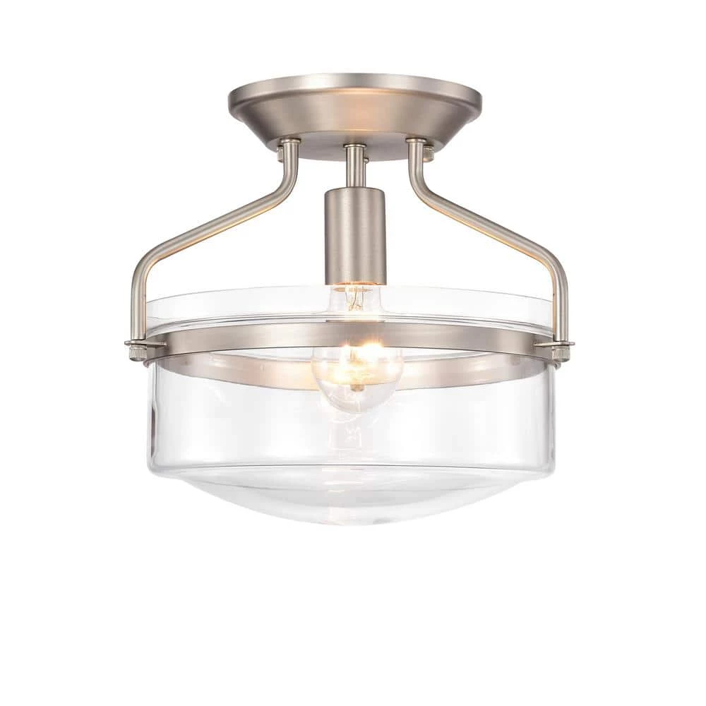 Add a stylish lighting fixture to your home with this semi-flush ceiling lamp. Made of metal and glass, this lamp has a matte satin nickel finish. This lamp holds one 60-Watt bulb to provide soft but ample lighting in any room.