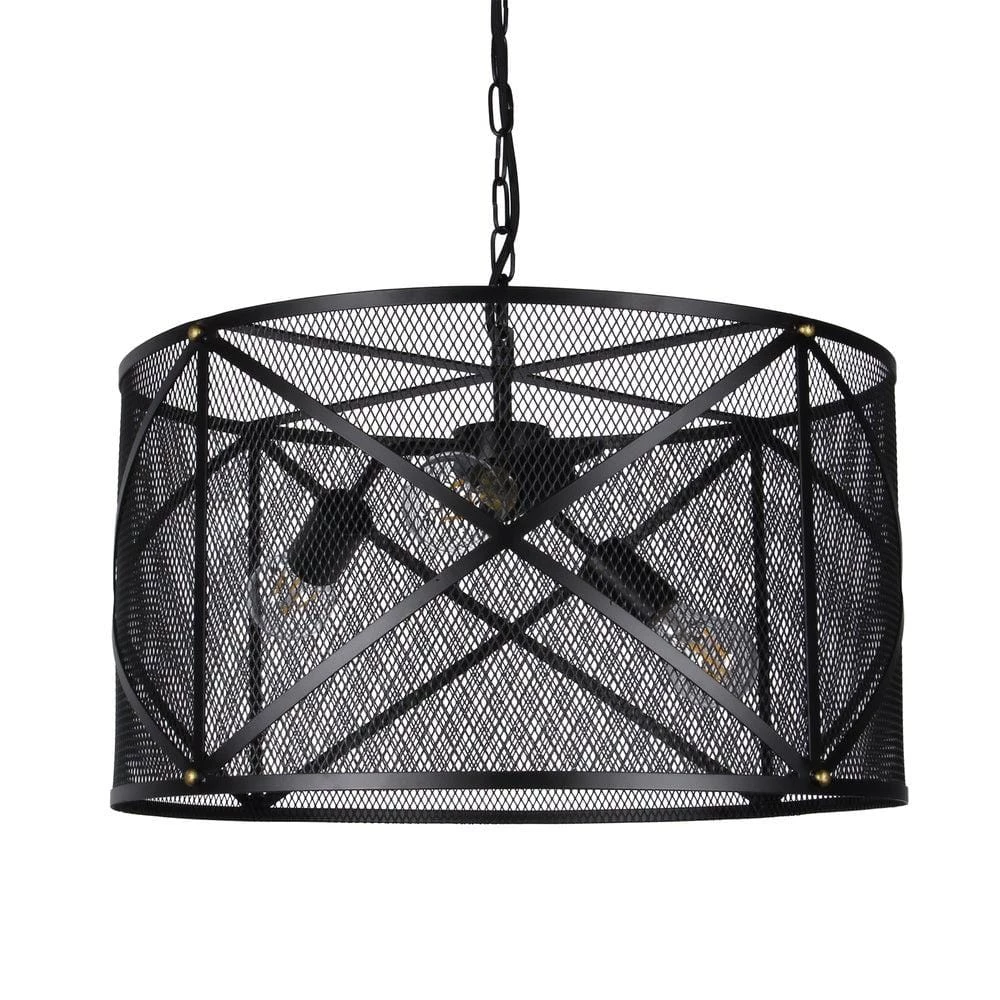 Illuminate your home like never before with this Mindor Black Round Mesh Shade Pendant. This pendant drum can be placed anywhere in your home and attributes multi-directional lighting. Sophisticated urban style incorporates a modern cage design.