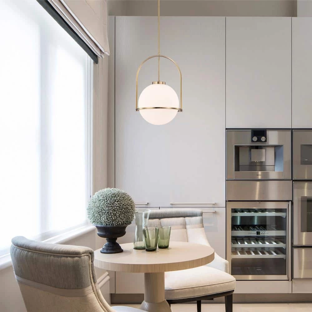 Modernize and give your home an aesthetic look with our 12 in. Brass Moonrise Pendant Ceiling Light. Our fixture includes 1-light that is housed in an Opaque White glass shade that enhances the lighting experience in any room it’s displayed in. Both decorative during the day and decoratively functional at night, get the best of both worlds with our 12 in. Moonrise Pendant Chandelier.