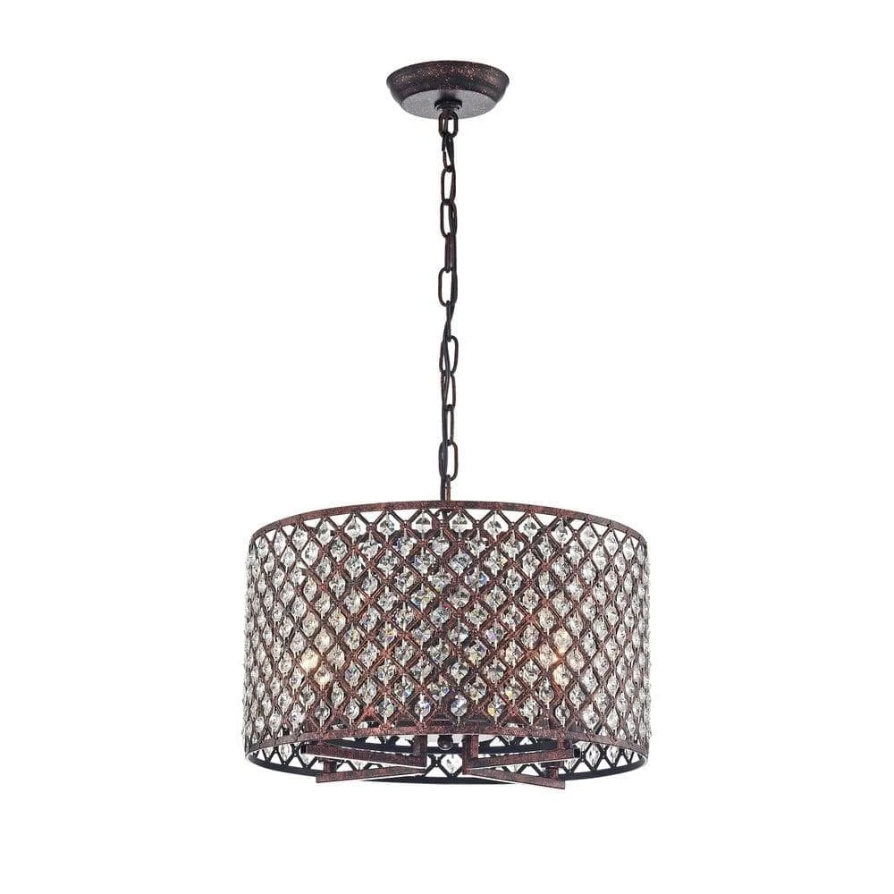 Take your home interior to the next level with our 16-inch Rustic Bronze Myrn Pendant Chandelier. Our fixture features four (4) lights, a crystal embedded shade, and a lovely aesthetic that will fit into any home interior. Decorative during the day and decoratively functional at night, get the best of both worlds with our 16-inch Myrn Pendant Chandelier.