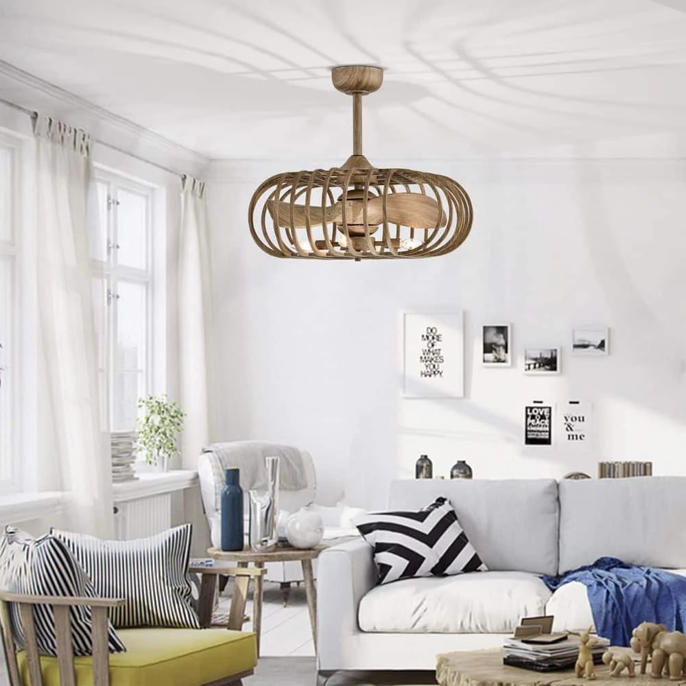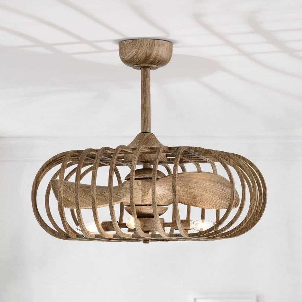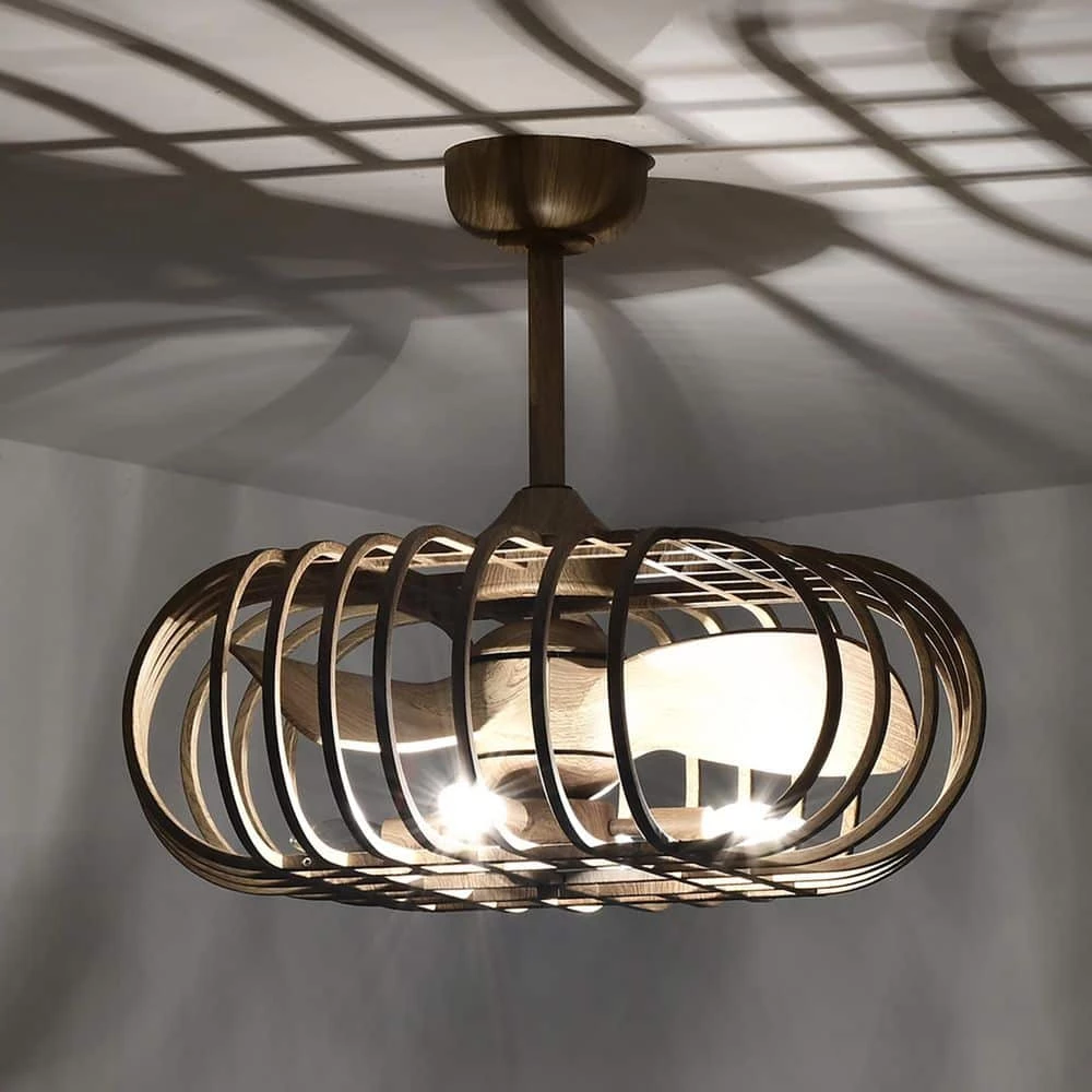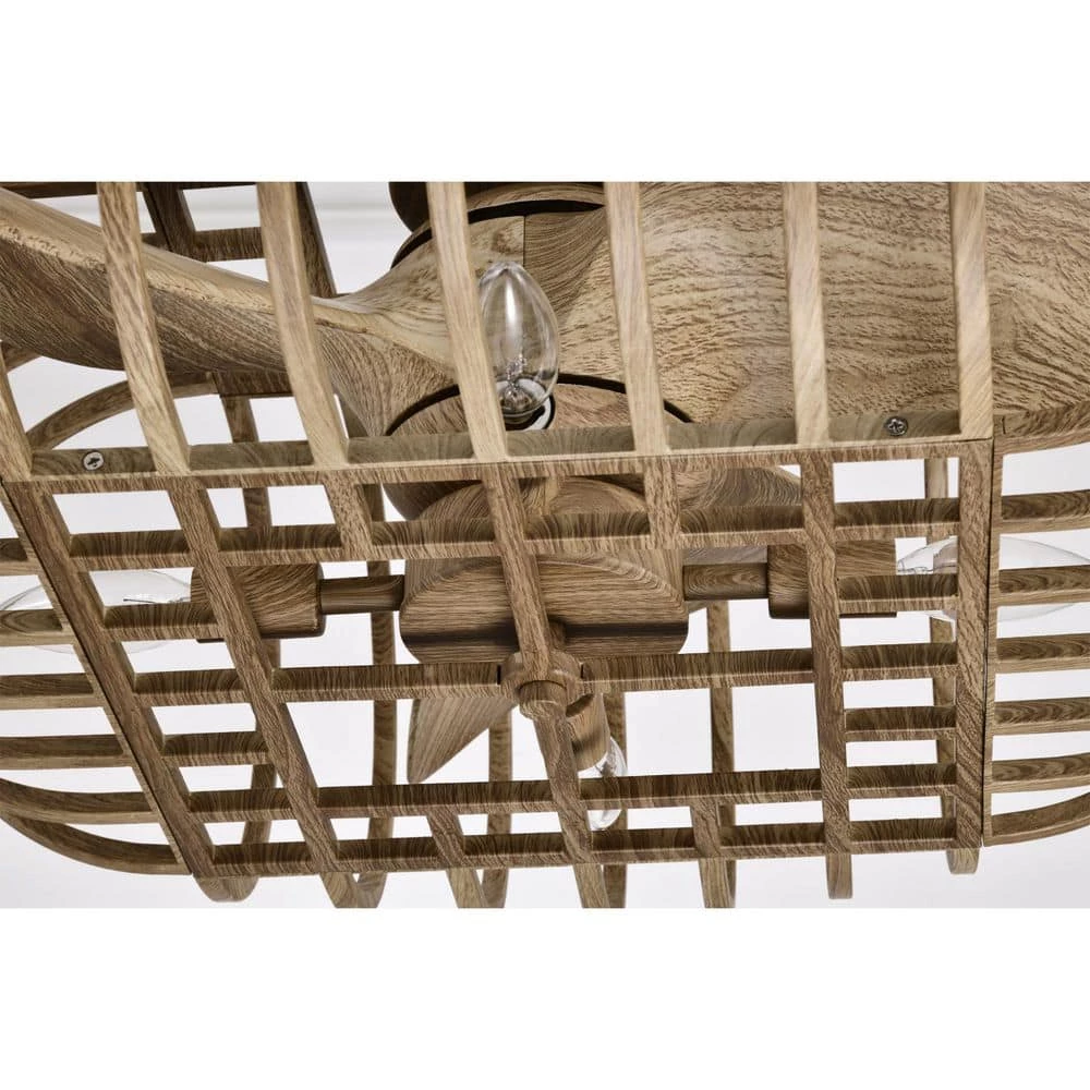 Become one with your home with our 26 in. Brown Faux Wood Grain Oren Ceiling Fan Chandelier. Our fixture features four (4) lights, six (6) fan speeds, and an open cage style shade that brings a natural aesthetic feel to your living space. Take in a breath of fresh air when you walk into your home and see our 26 in. Oren Ceiling Fan Chandelier up in display.