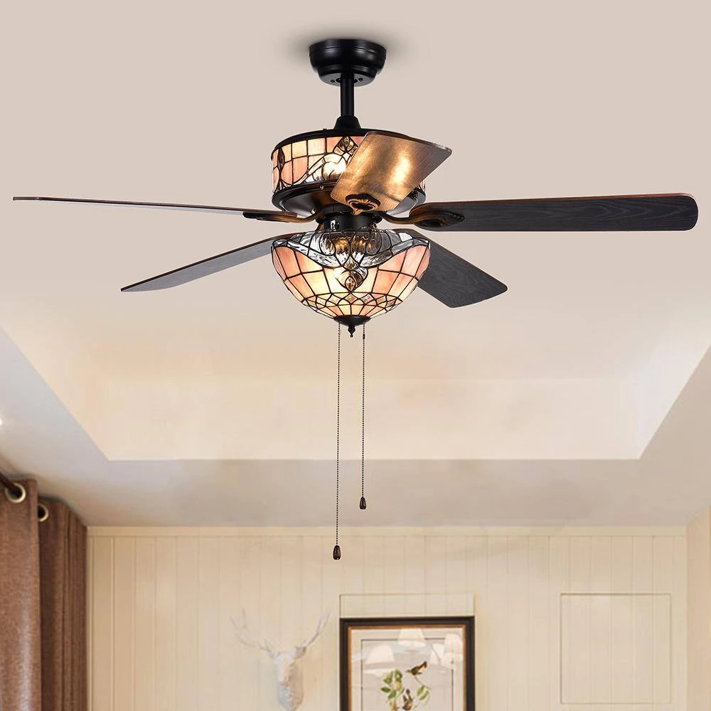 The Orla Remote Controlled Ceiling Fan is an attractive matte black finished piece that combines the functionality of a fan with an eye catching Tiffany Style Glass chandelier. Designed with Baroque Period influences, this unique piece adds a classic elegance to your space. The efficient wood blades offer great air movement to save on your electricity bill with three selectable rotation speeds.