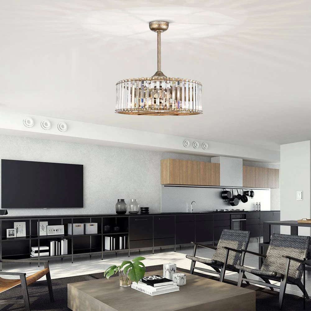 Compliment your home with our 26-inch Pereder Ceiling Fan Chandelier. This fixture holds six (6) lights that creates an ambient environment in your living space. Included is a remote control that allows you to access these features and helps you choose between the six (6) airing options for your cooling comfort, with ease. Both decorative during the day and decoratively functional at night, get the best of both worlds with our 26-inch Pereder Ceiling Fan Chandelier.