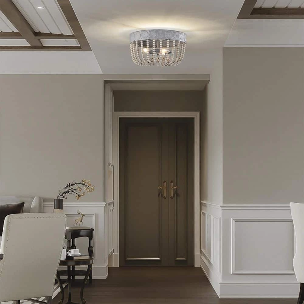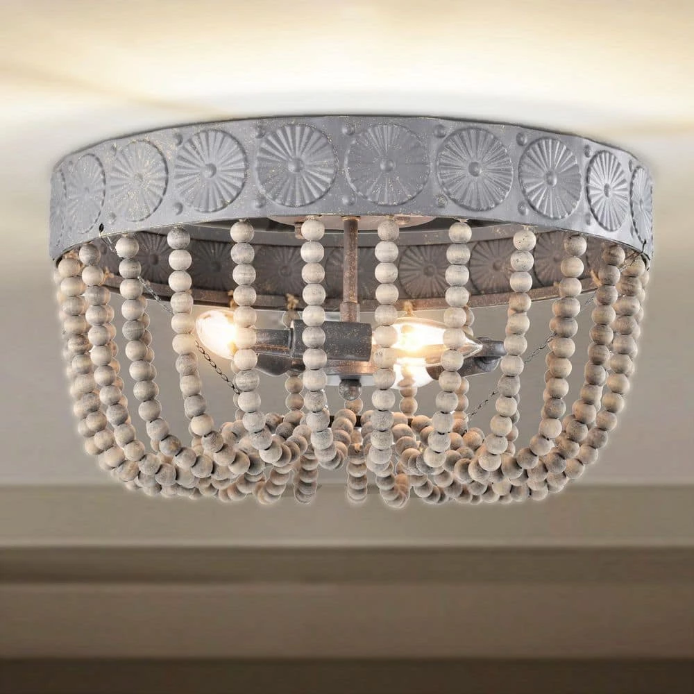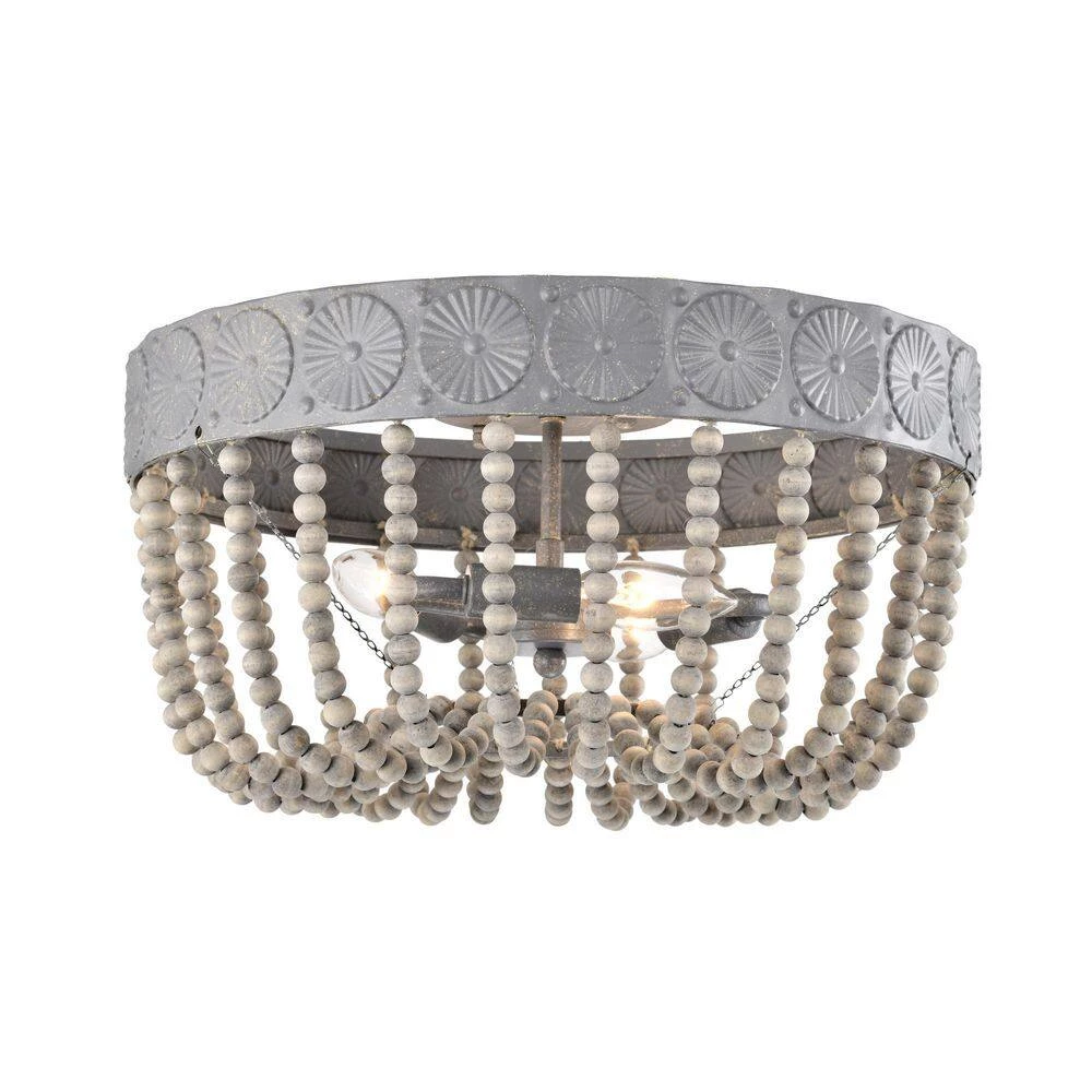 Allow your home to pick up an aesthetic with the help of our 16 in. Weathered Grey Poury Flush Mount Ceiling Light. Our fixture features 3-lights, a beaded shade and a unique design that is bound to refreshen your home interior. Decorative during the day and decoratively functional at night, get the best of both worlds with our 16 in. Poury Flush Mount Ceiling Light.