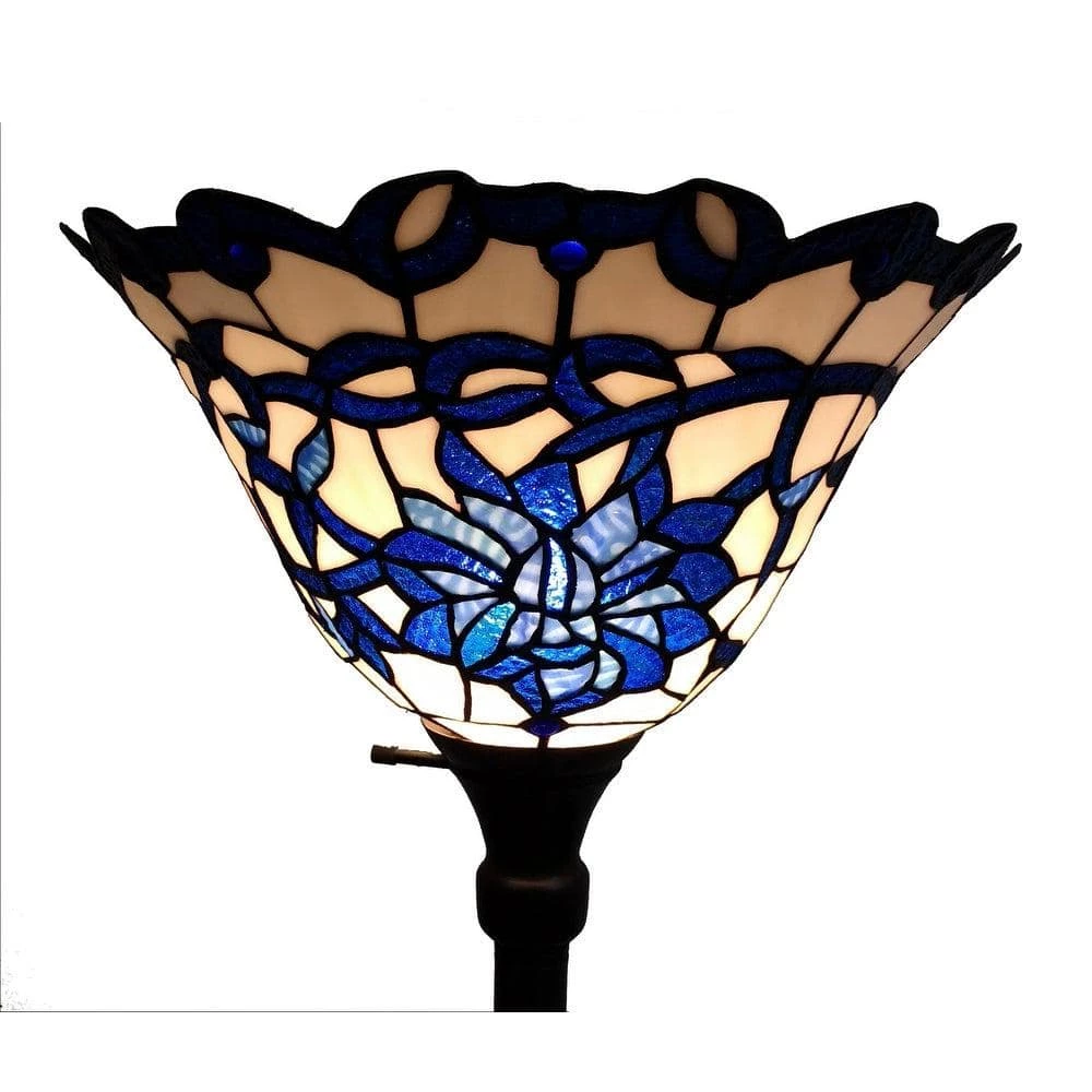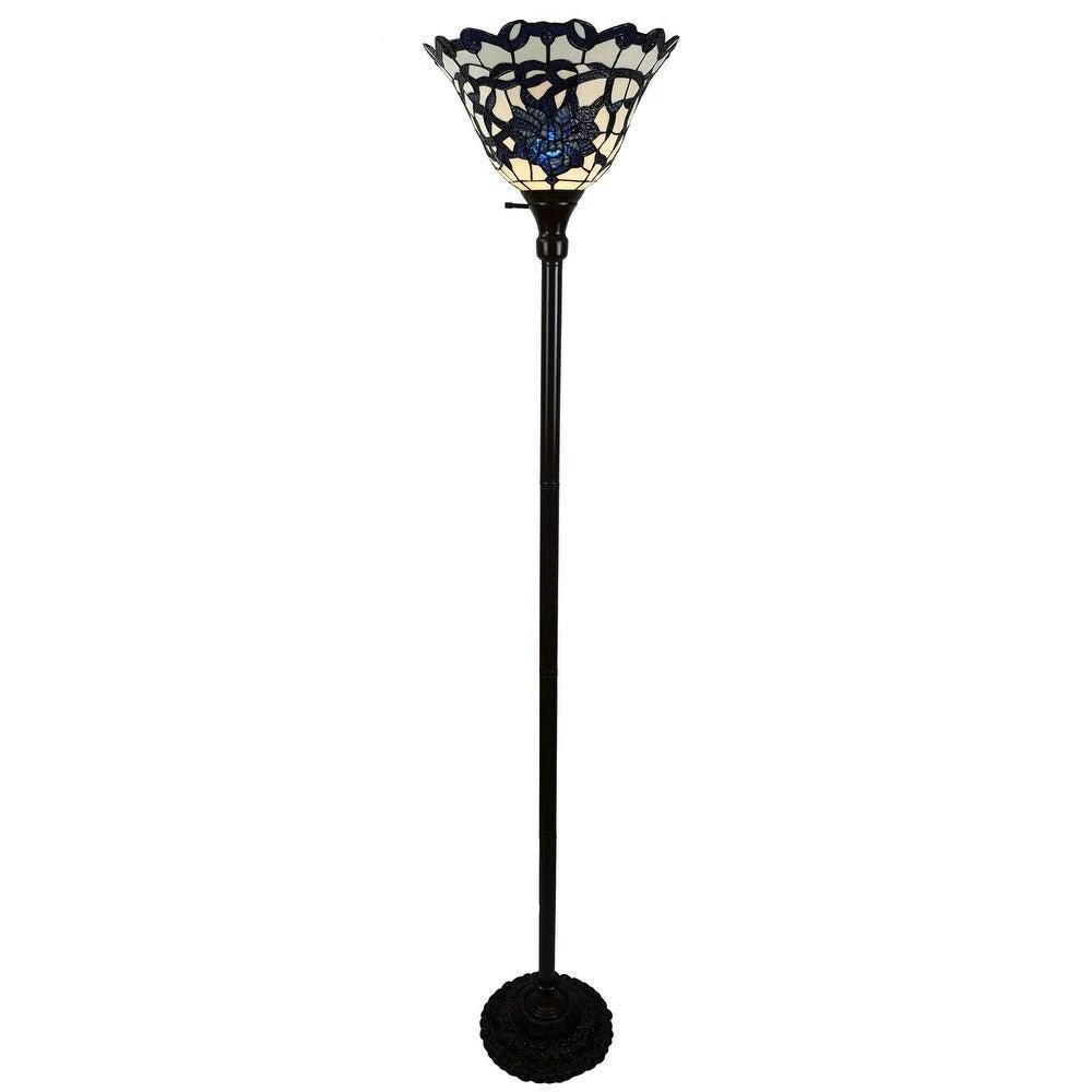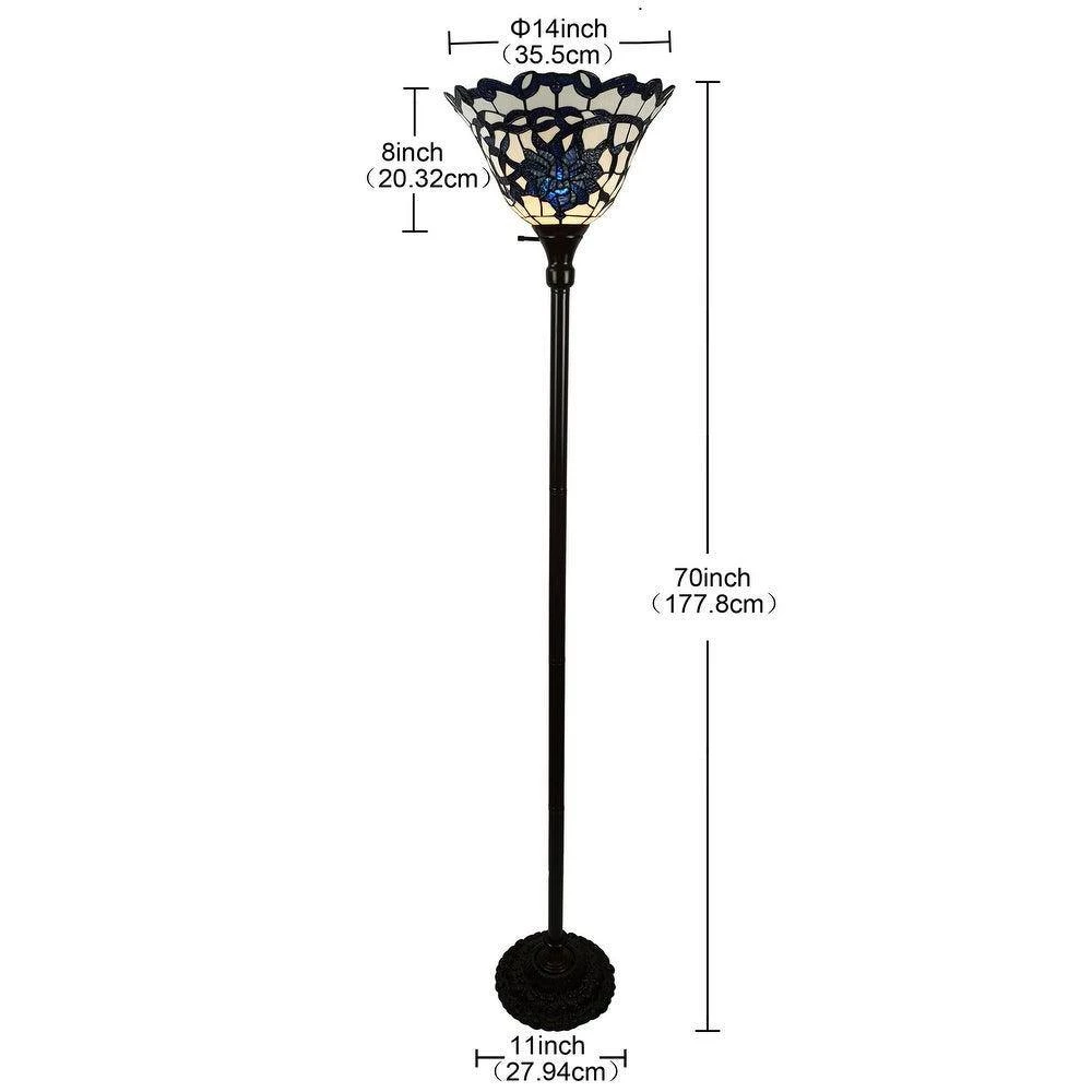 Light up any room and add a vintage flair to your home with this Tiffany-style Prim floor lamp. One 60-Watt light bulb shines through the blue and white stained glass cone shade to provide plenty of illumination and the oil rubbed bronze iron base ensures the lamp remains sturdy when in use. This multi-colored shade glass with give a good atmosphere on your desired room.