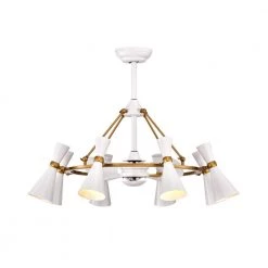 Illuminate your living or dining room with this fandelier type ceiling fan. In Matte White with a Gold finish, this ceiling fan displays 8-lights that provide multi-directional lighting in a wide area in your home. Remote Controlled for additional convenience.