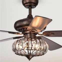 Aguano 52 in. Black Indoor Remote Controlled Ceiling Fan with Light Kit by Warehouse of Tiffany