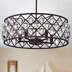 Monet 17 in. Black Indoor Drum Shade Crystal Chandelier with Shade by Warehouse of Tiffany