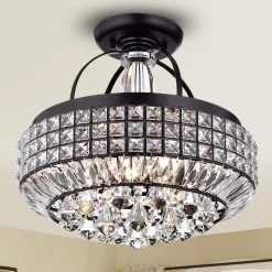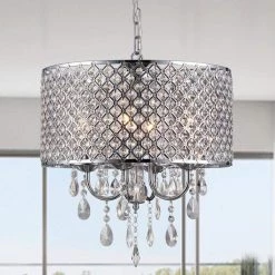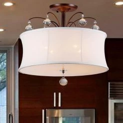 Roxanne 4-Light Brown Ceiling Bronze Crystal Chandelier with Fabric Shade by Warehouse of Tiffany