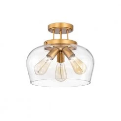 Sadie 12 in. 3-Light Indoor Matte Gold Semi-Flush Mount Light with Light Kit by Warehouse of Tiffany