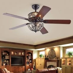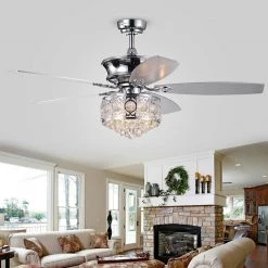 Hasna 52 in. Indoor Chrome Remote Controlled Ceiling Fan with Light Kit by Warehouse of Tiffany