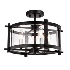 Ricky 12.9 in. 4-Light Black Indoor Semi-Flush Mount Light with Light Kit by Warehouse of Tiffany