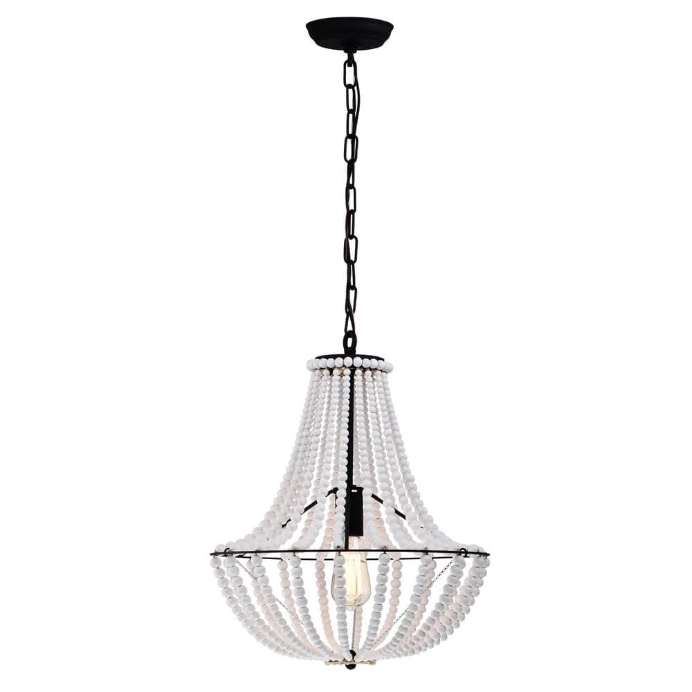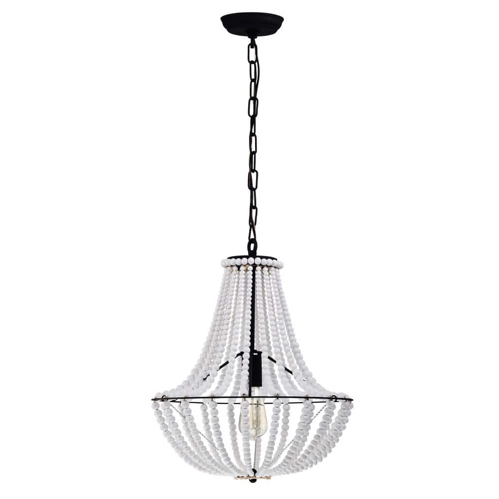 Allow your evenings to have an aesthetic feel and look with the help of our 16 in. Black and Gloss White Roly Pendant Ceiling Light. Our fixture features 1-light, a Gloss White beaded covered shade and a unique design destined to introduce a breath of fresh air. Decorative during the day and decoratively functional at night, get the best of both worlds with our 16 in. Roly Pendant Ceiling Light.