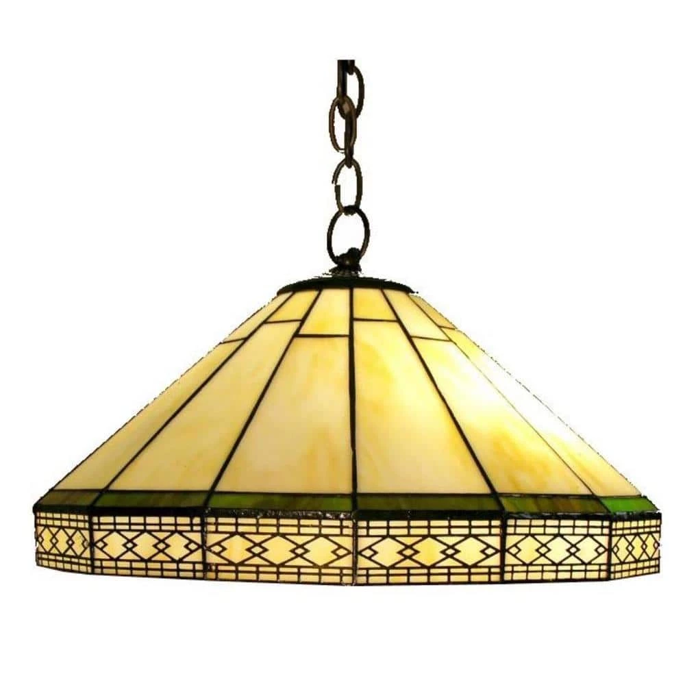 The Tiffany Style 48 in. Hanging Lamp has been handcrafted using methods first developed by Louis Comfort Tiffany. The Two 60-Watt standard incandescent bulb provides illumination and enhances the beauty of each cut glass to your room. It features an elegant antique bronze hanging fixture and colorful stained glass. Shade contains more than 100 pieces of hand-cut glass wrapped in fine copper foil and accented with rich vibrant cabochons.