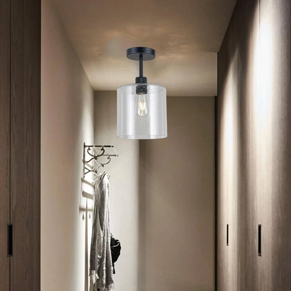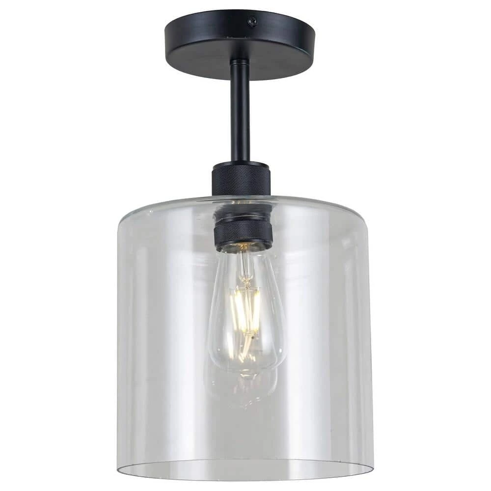Add some modern style in your home with this visually striking and graceful semi-flush mount ceiling lamp. The cylinder-shaped, clear glass shade features 1-light bulb providing ample lighting that pours into any room.