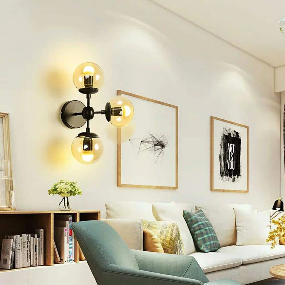 This is a simplified mid-century contemporary design. Three glass globes using the included Edison style light bulbs give your space a exciting modern look. The black framing will look great in any number of interiors.