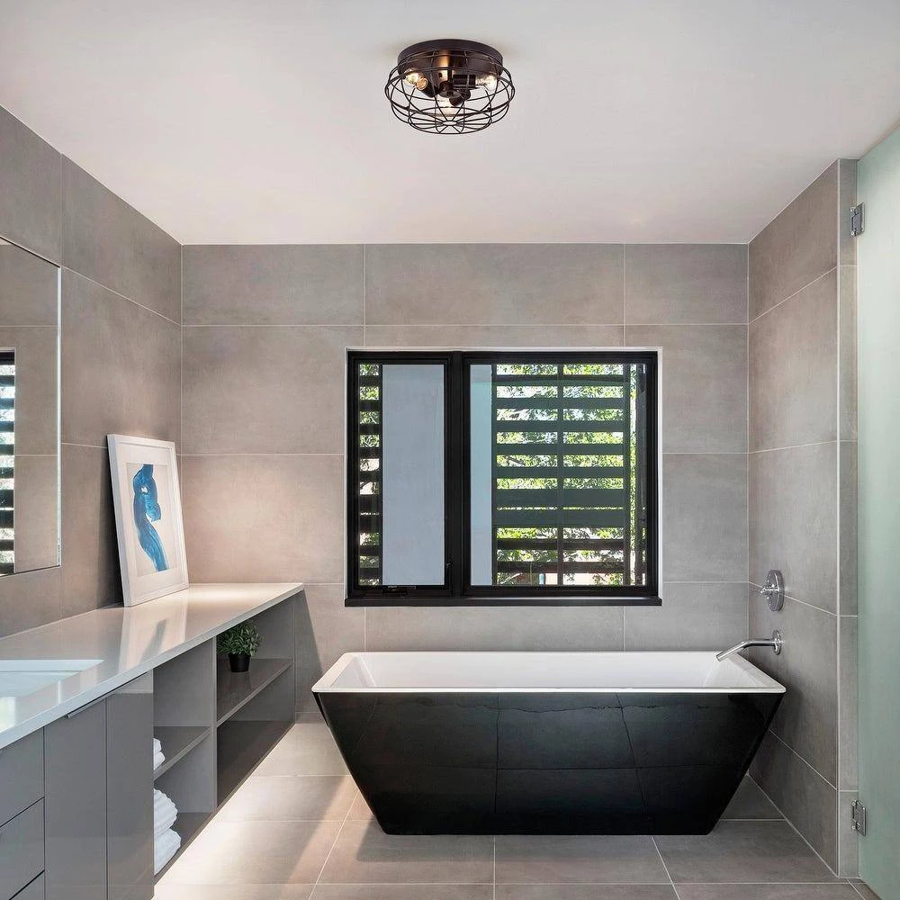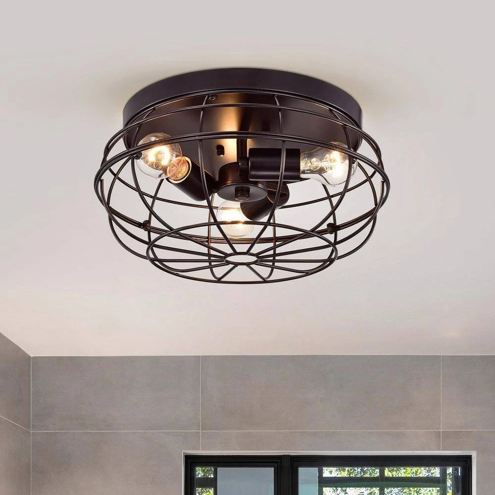 Elevate your living room’s industrial vibe while adding character to your space with this 3-light flush-mount chandelier. 3-lights sit horizontally inside this iron cage to supply ample illumination from this fascinating focal point on your ceiling.