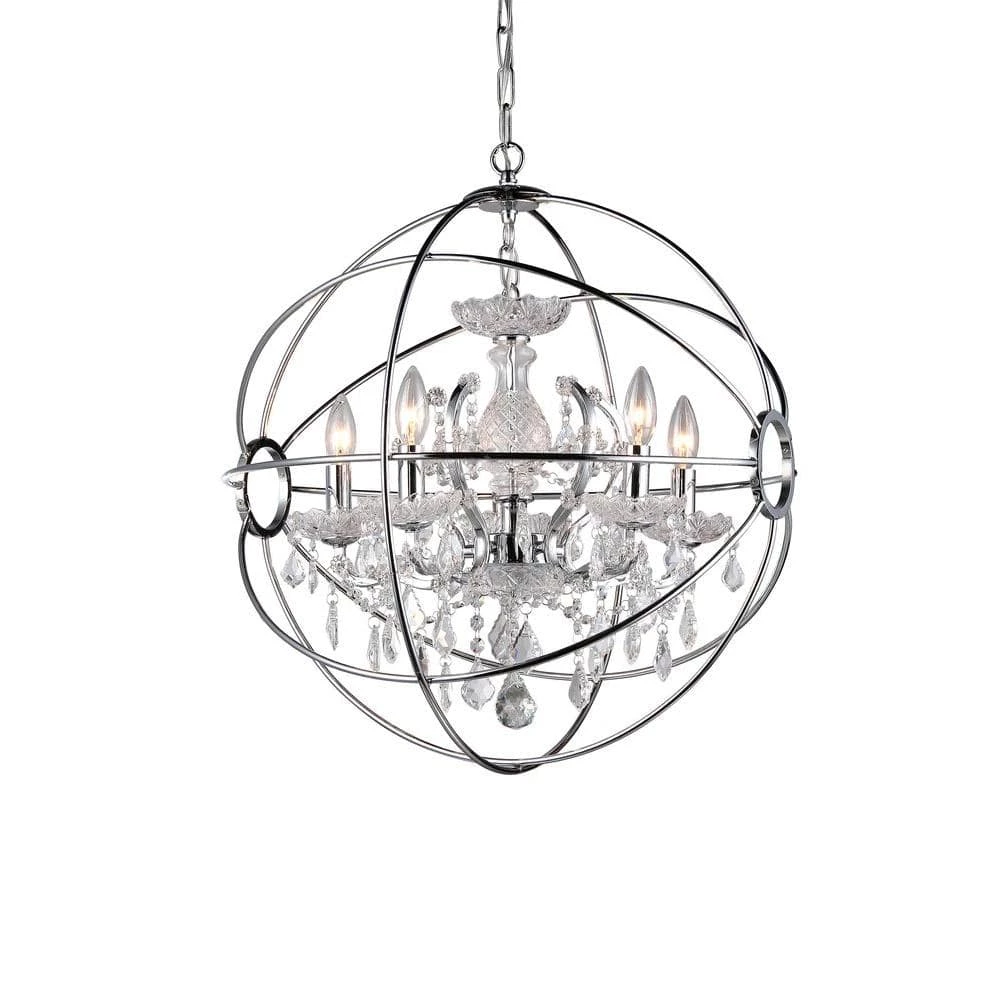Add some elegance and unique style to your home with the Saturn’s Ring 6-Light Chrome chandelier. This dynamic lighting element features generous crystals to catch the light for and impressive display perfect for your dining room or entryway. This stunning fixture will give your home a contemporary touch, consisting of generous rows of crystals to reflect the light.