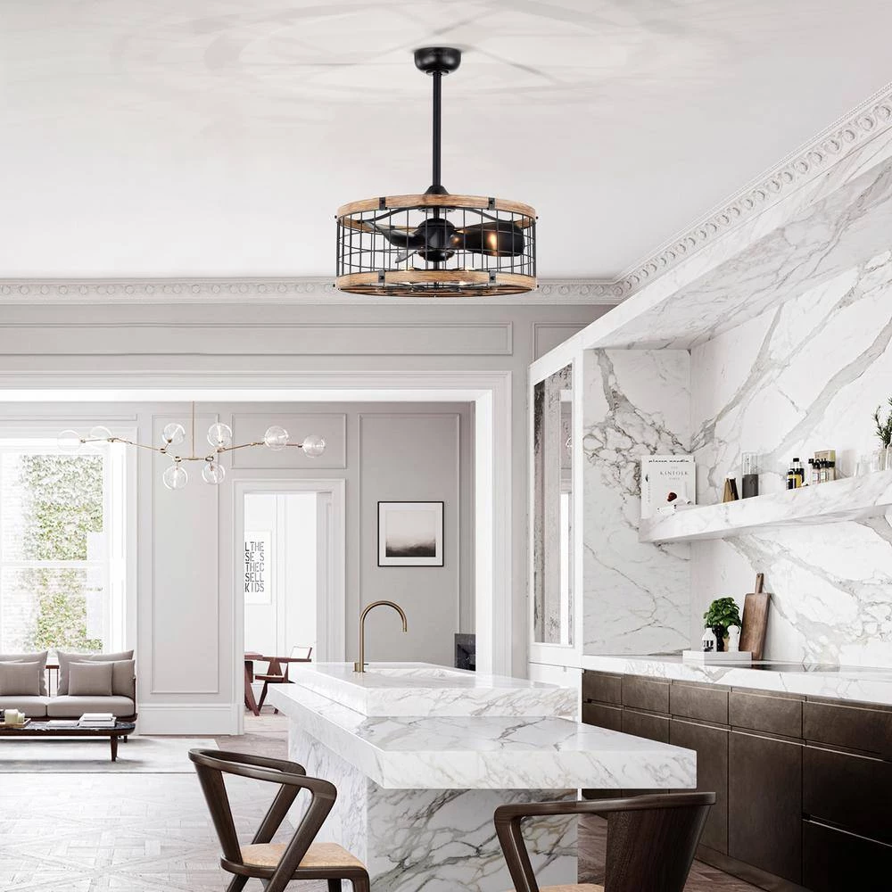 Can’t wait to go home? Well, you will even more with our charming 25-inch Selma Ceiling Fan Chandelier. Our fixture features six (6) lights that are housed in a Matte Black cage-style shade that is garnished in a Faux Wood Grain finish that creates an aesthetic look and feel to the environment that it’s displayed in. Included is a remote control that allows you to access these features and helps you choose between the six (6) airing options for your cooling comfort, with ease. Decorative during the day and decoratively functional at night, get the best of both worlds with our 25-inch Selma Ceiling Fan Chandelier.