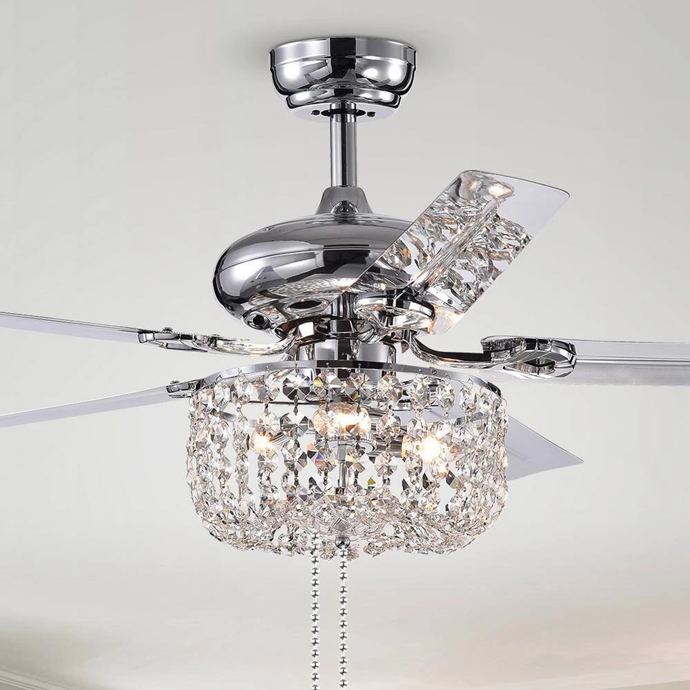 The 3-speed reversible motor insures you find just the right amount of airflow. This fixture is adorned with bright crystals that add charm and grace to your space. Keep the temperature comfortable year round and save money from having to turn on the air conditioning.
