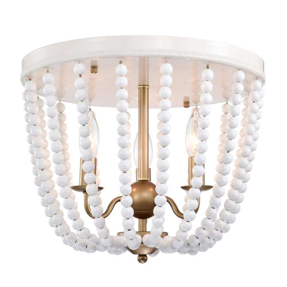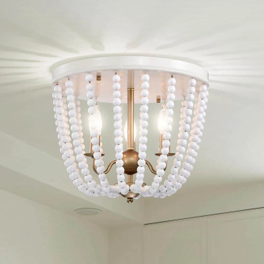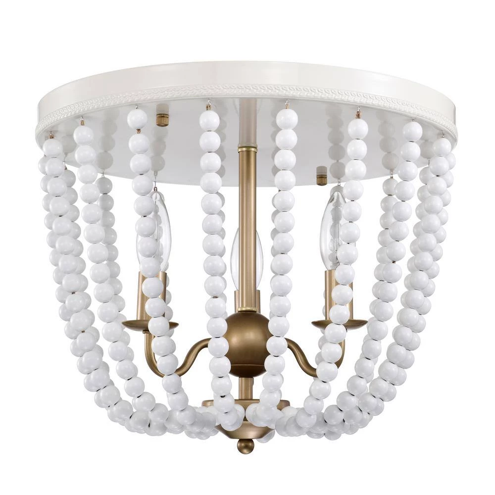 Allow our 15 in. Gloss White and Brass Taha Flush Mount Ceiling Light to refreshen your environment and introduce a new setting into your home. Our fixture features 3-lights, a Gloss White beaded shade and a lovely Brass candelabra base that brings this design in full circle. Decorative during the day and decoratively functional at night, get the best of both worlds with our 15 in. Taha Flush Mount Ceiling Light.
