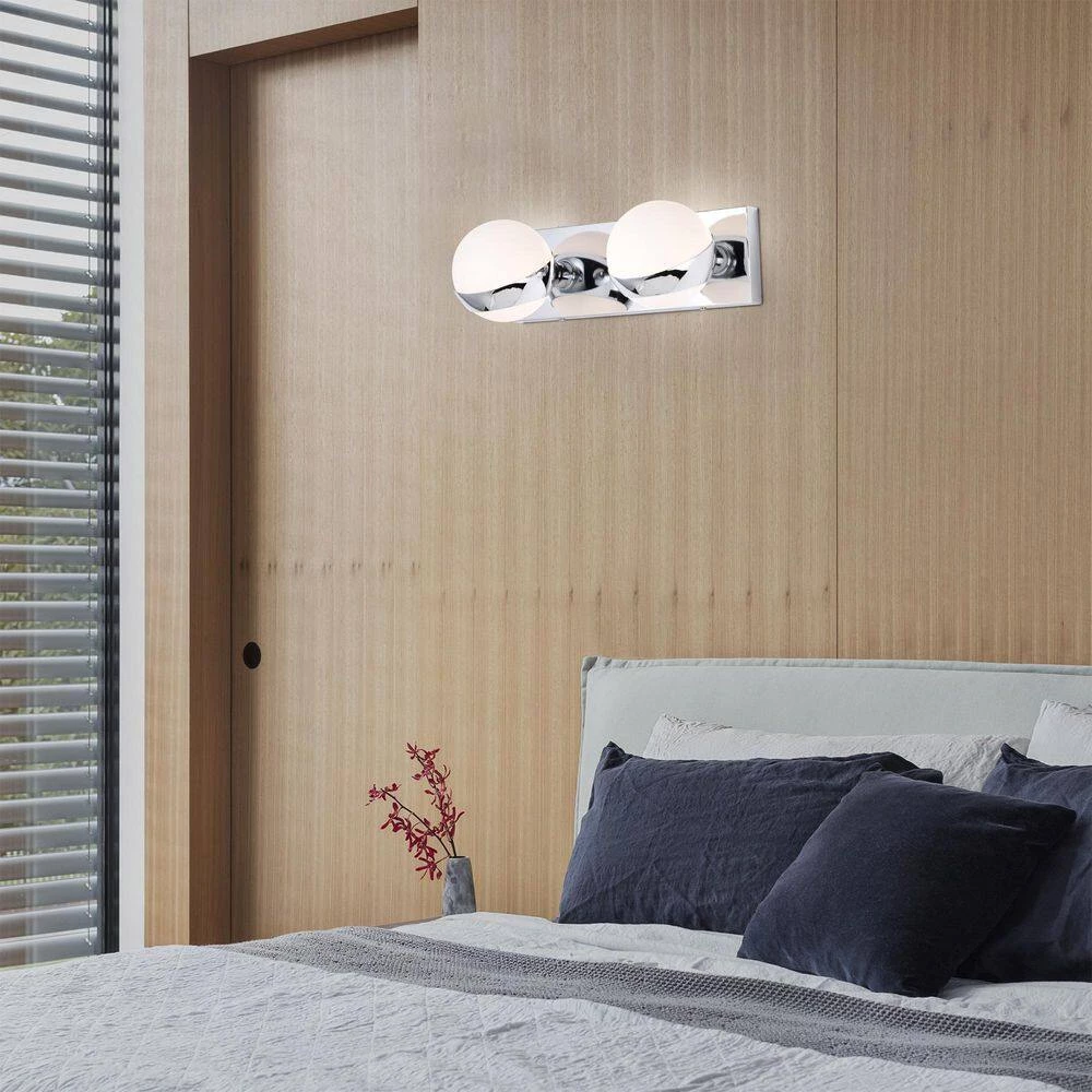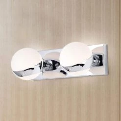 Revolutionize and bring your home interior to life with the help of our 14 in. Chrome Tommy Wall Sconce. Our fixture features 2-lights, two (2) frosted White globe glass shades and decorated in Chrome our design comes in full circle to present a lovely display. Decorative during the day and decoratively functional at night, get the best of both worlds with our 14 in. Tommy Wall Sconce.