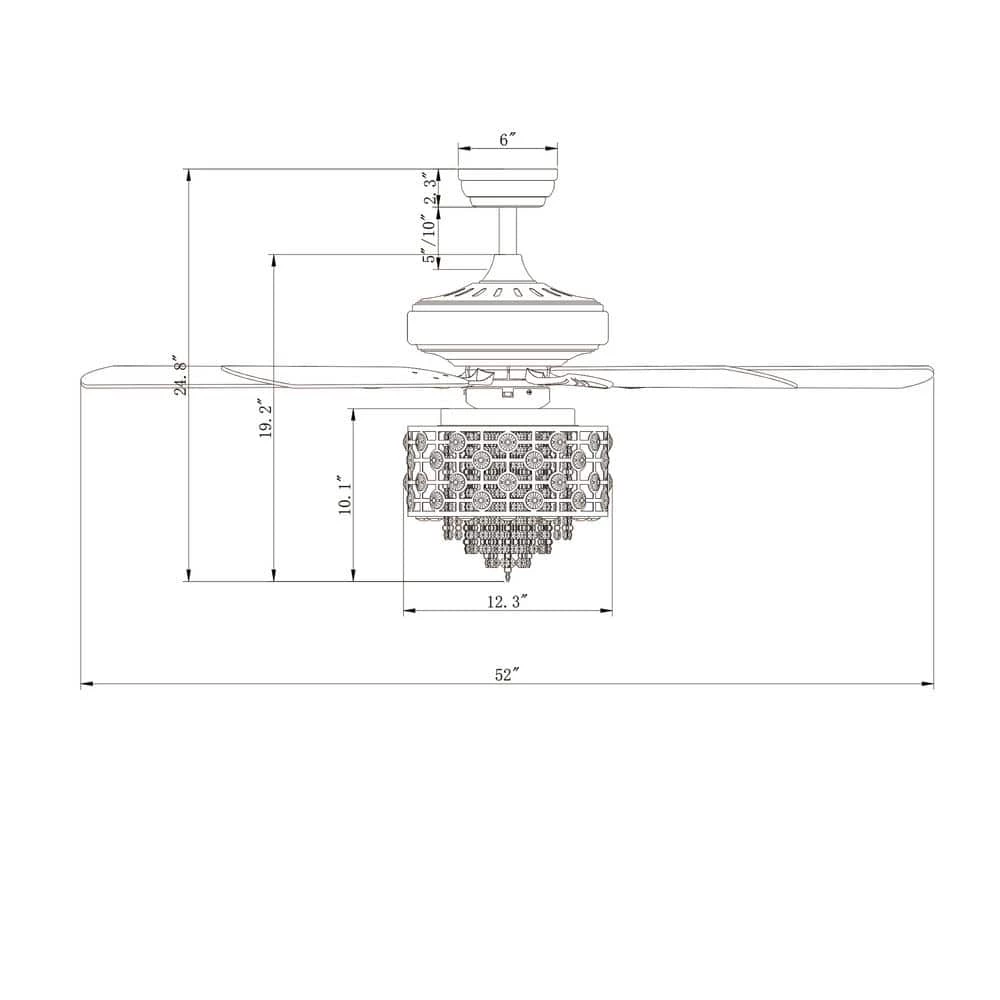 Create a stylish look in your home by adding this elegant crystal ceiling fan to the decor. Featuring aged silver finish and geometric design shade, this contemporary ceiling fan is surely an eye catcher to all your friends and guests. This fixture combined with a ceiling fan and chandelier-inspired frame is a beautiful balance between form and function that provides excellent illumination and reliable ventilation. Remote controlled for your cooling convenience.