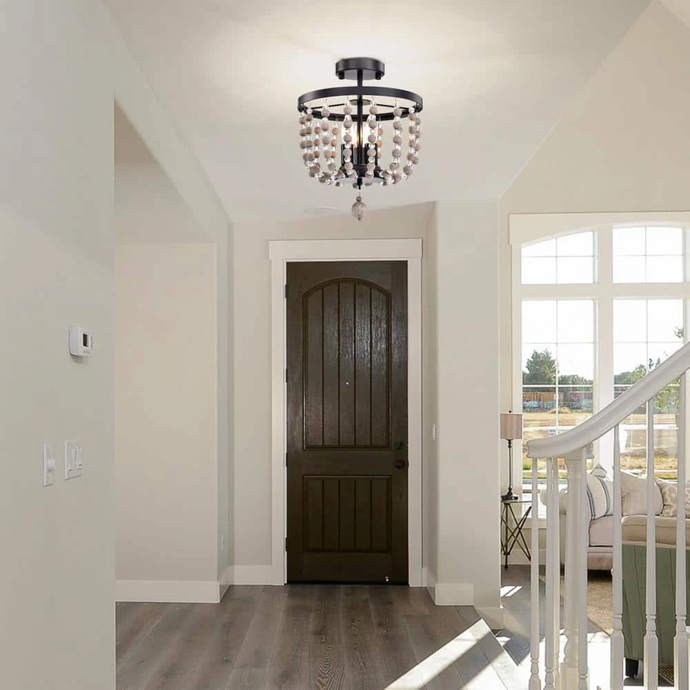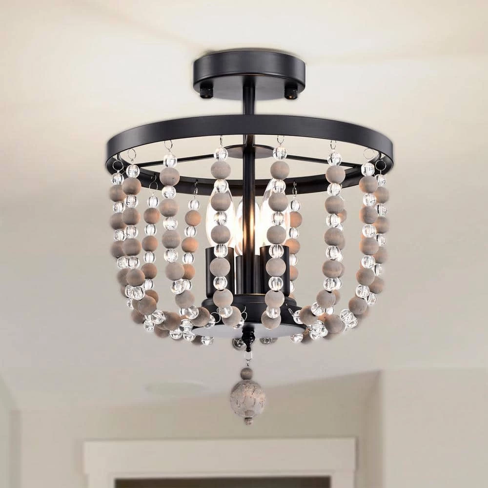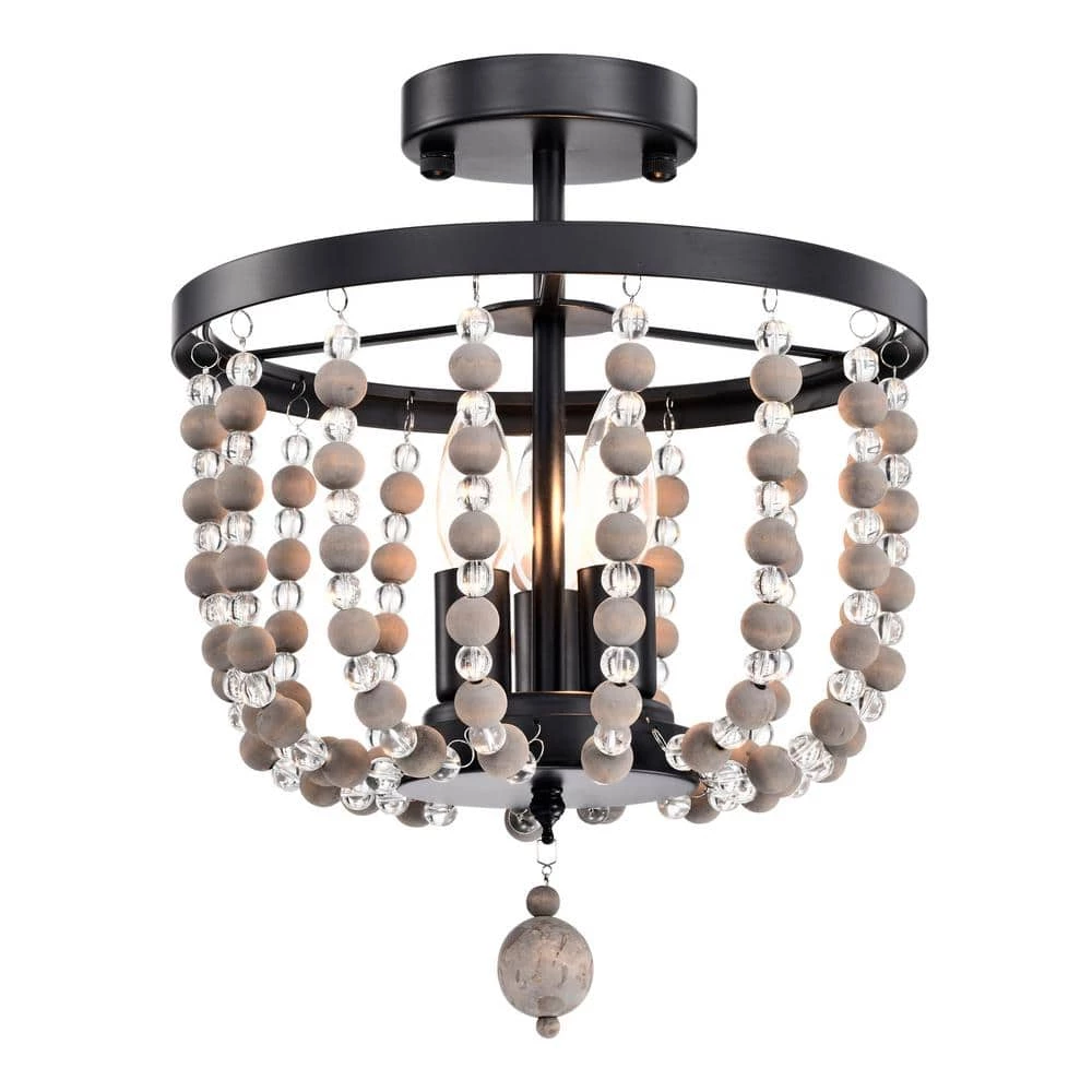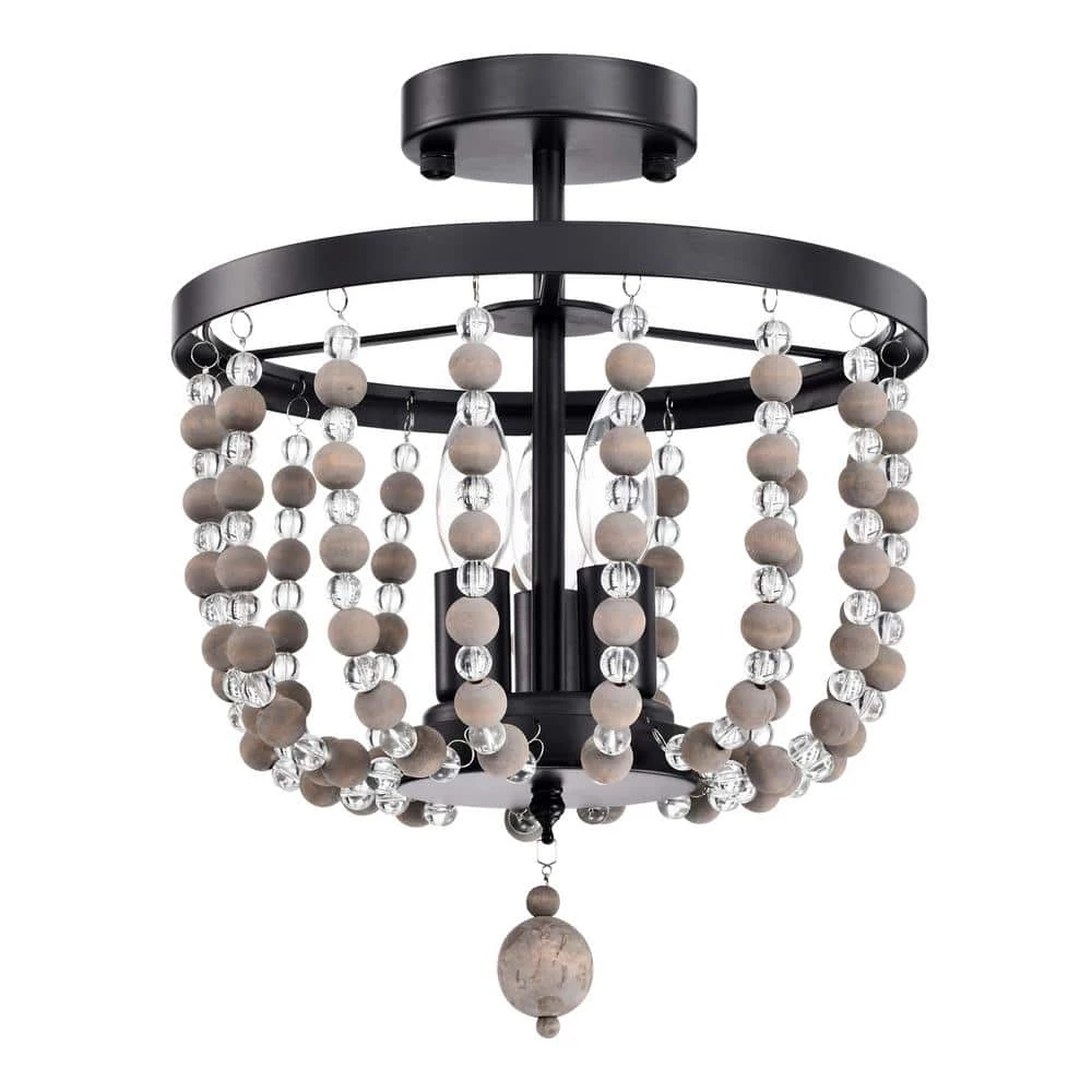 Be welcomed to a breath of fresh air with our 12 in. Matte Black Valentina Semi-Flush Mount Ceiling Light. Our fixture features 3-lights and they’re all housed in a beaded covered shade. Decorative during the day and decoratively functional at night, get the best of both worlds with our 12 in. Valentina Semi-Flush Mount Ceiling Light.