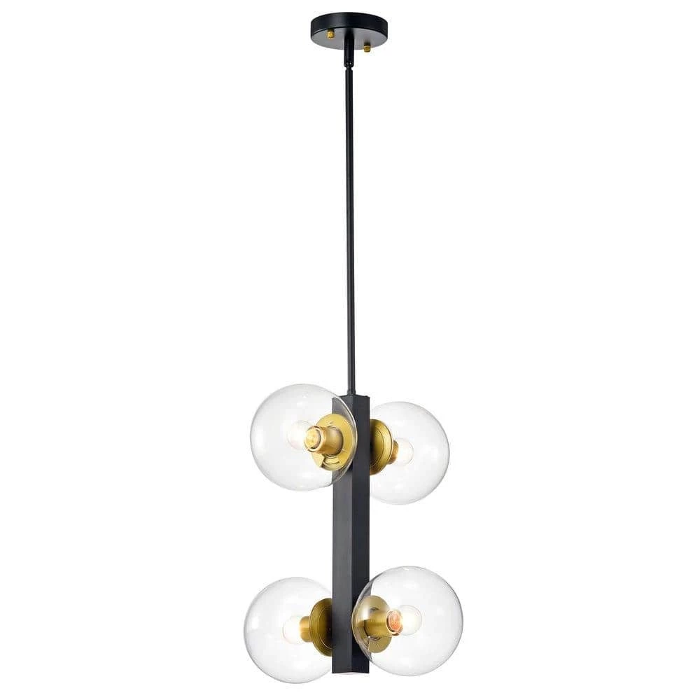 Update your kitchen or dining room with the simple modern and minimalist style of this black and gold clear glass pendant lamp. With 4-lights protected by globe shades that warm up the glow while creating extra visual appeal, this hardwired piece features a black-finish metal rod that’s both sturdy and attractive. This pendant supports wattage from 60-Watt to 100-Watt, allowing it to cast ample illumination whether you’re working with a small, medium, or large area.