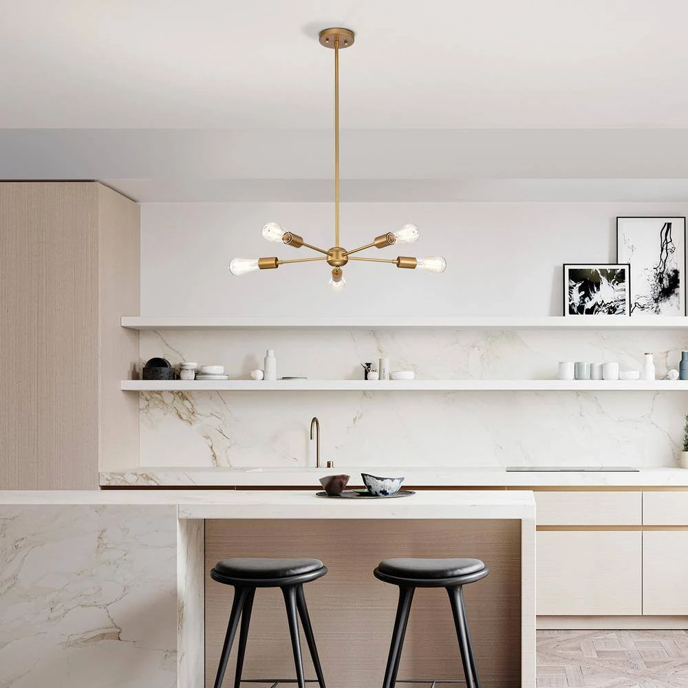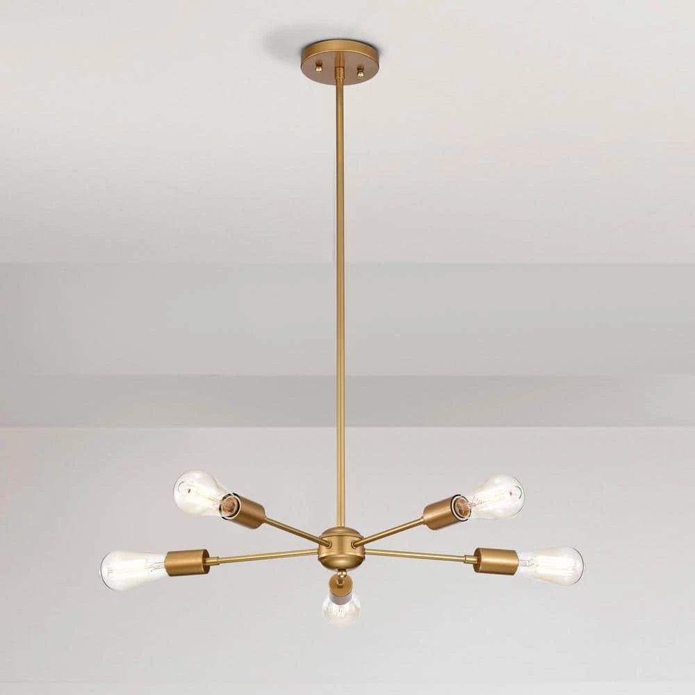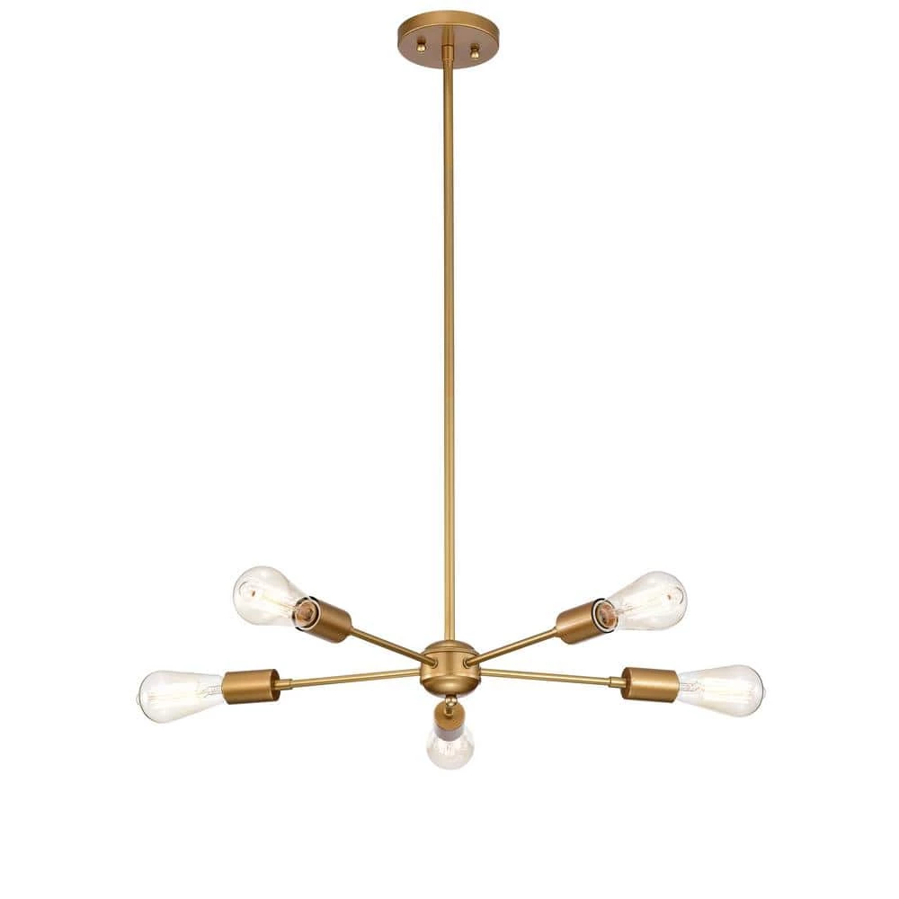 Add an industrial, elegant style to your interior space with this 5-light chandelier. It features linear metal frames in matte gold finish, while the 5-light design provides plenty of illumination over a wide area. This chandelier will give your room more impact.