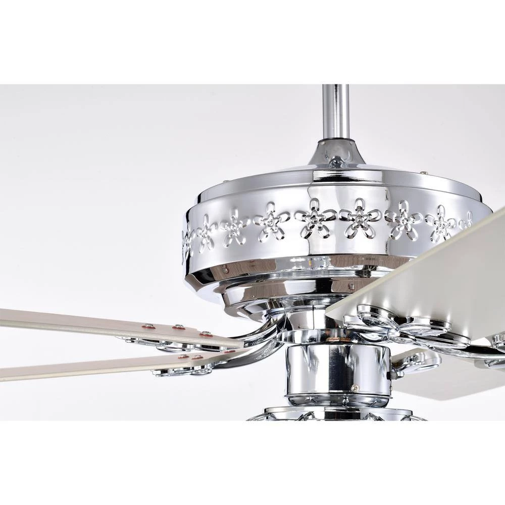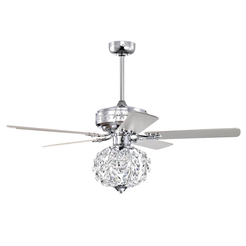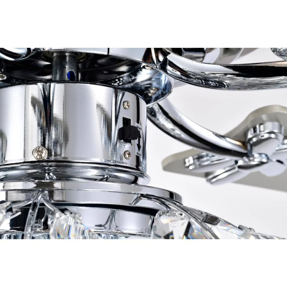 Take in a breath of fresh air when walking into your home (or business establishment) thanks to our 52 in. Polished Chrome Wellas Ceiling fan Chandelier. Detailed with an enchanting shade, our fixture features 3-lights that’ll create a warm and lavishly environment. Included is a remote control that allows you to access these features and helps you choose between the 3 airing options for your cooling comfort, with ease. Both decorative during the day and decoratively functional at night, get the best of both worlds with our 52 in. Wellas Ceiling Fan Chandelier.