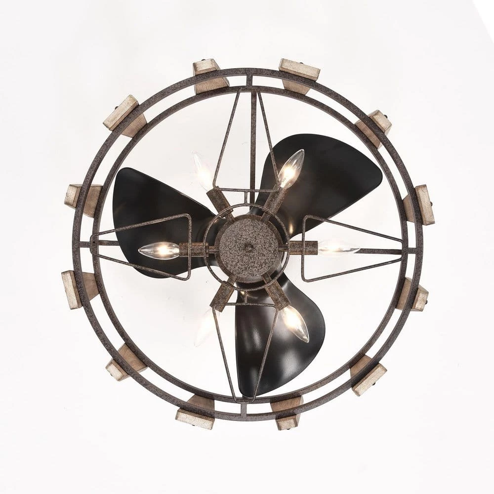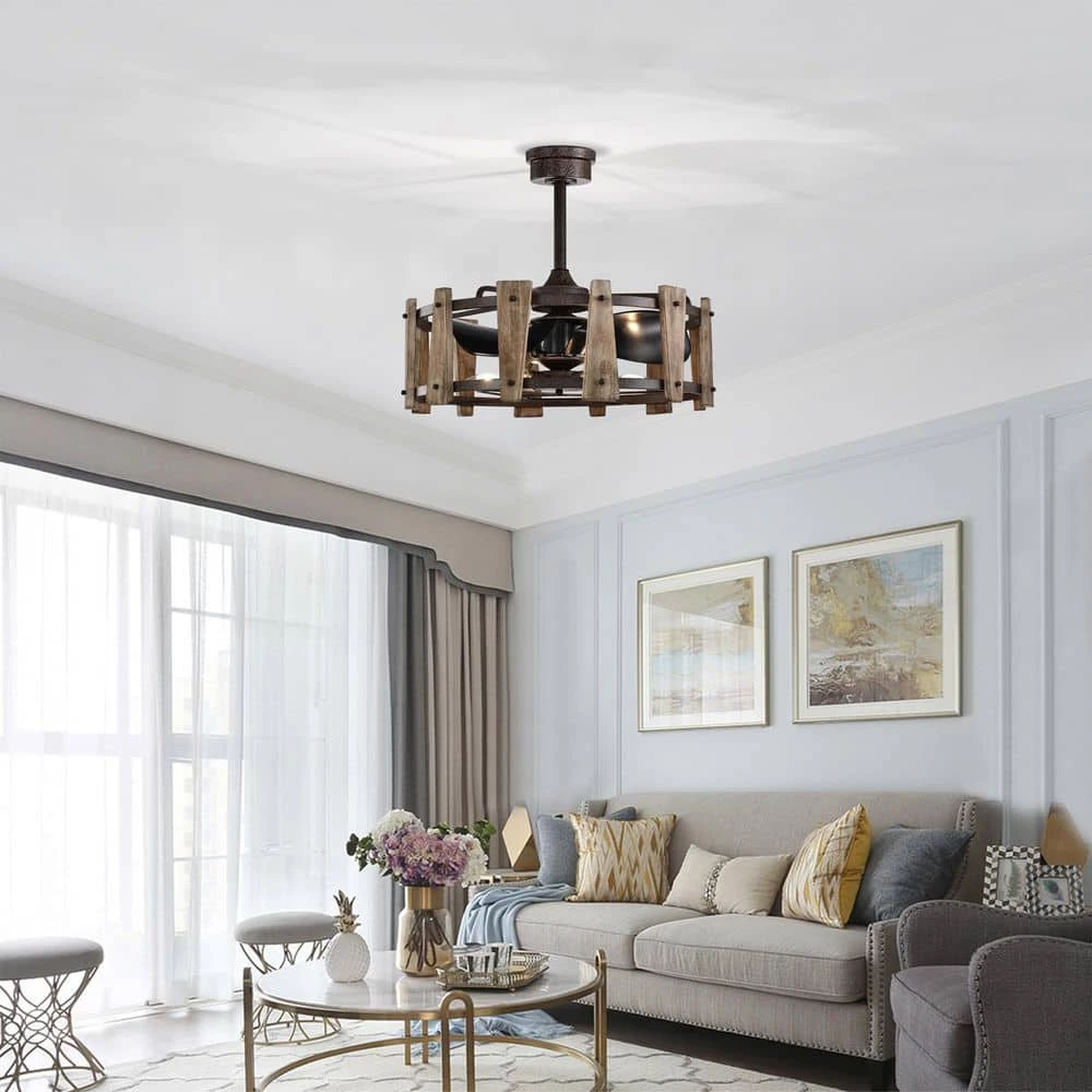 Nothing says “home” like our 25 in. Rustic Copper Woody Ceiling Fan Chandelier. Our fixture features 6 lights,6 fan speeds and a lovely Faux Wood paneled shade that brings this design in all together. Decorative during the day and decoratively functional at night, get the best of both worlds with our 25-inch Woody Ceiling Fan Chandelier.